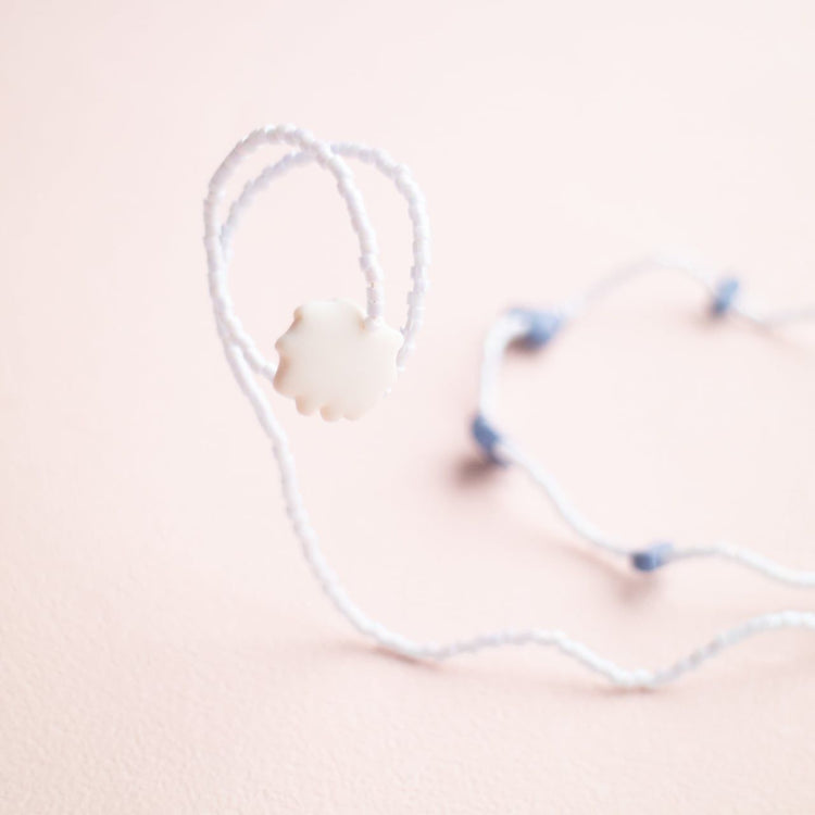 줄기와 비슷한 모양의 구슬에는 철사가 달려 있어서 구슬 주위에 끈을 묶어 원하는 대로 크기를 조절할 수 있습니다.