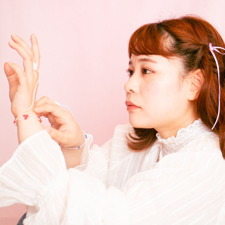 9핀이나 마르카신 등의 기성품을 와이어와 비즈로 대체함으로써 작품이 더 자유롭고 유희적인 느낌을 갖게 되었습니다.