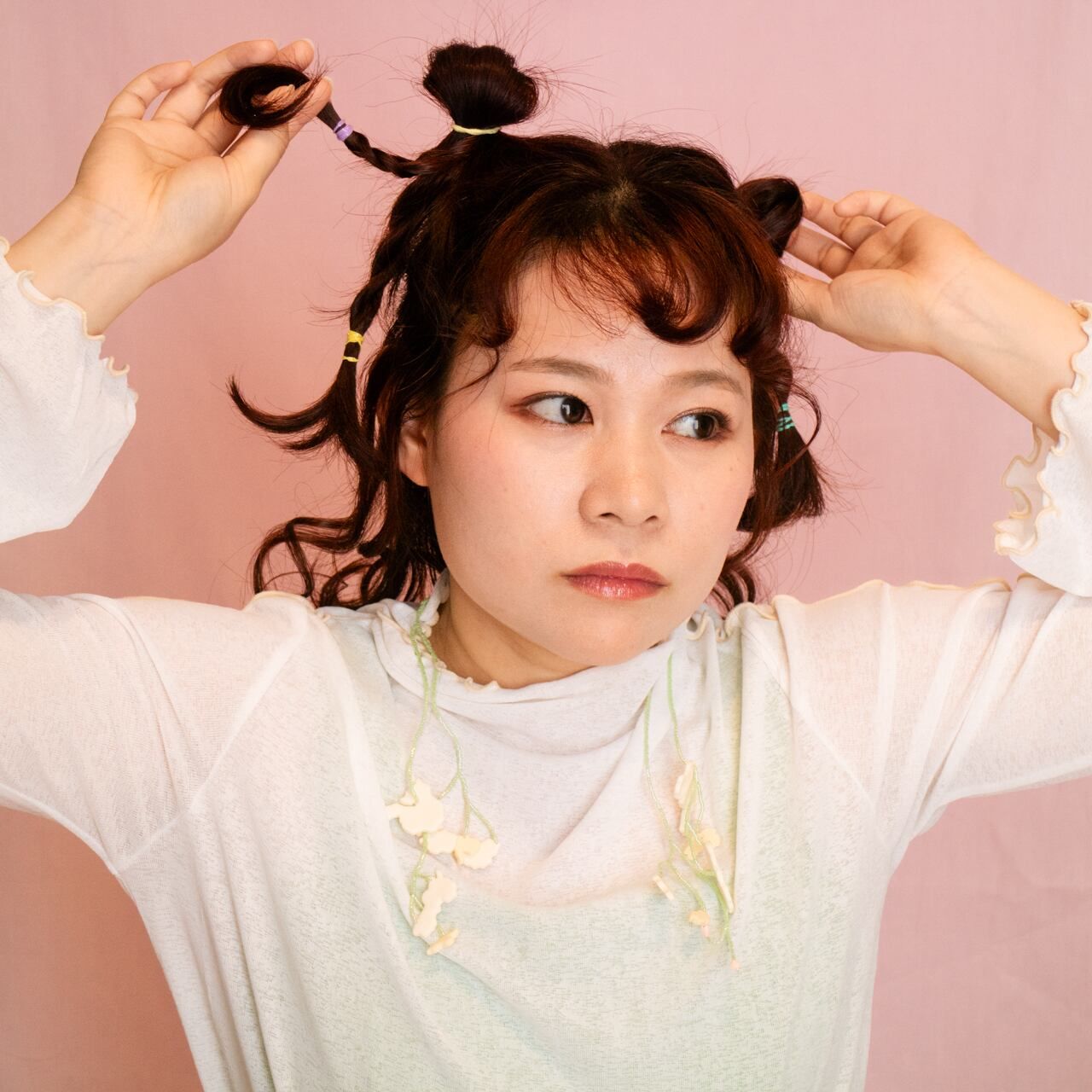 9핀이나 마르카신 등의 기성품을 와이어와 비즈로 대체함으로써 작품이 더 자유롭고 유희적인 느낌을 갖게 되었습니다.