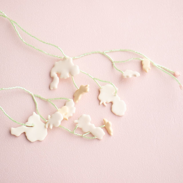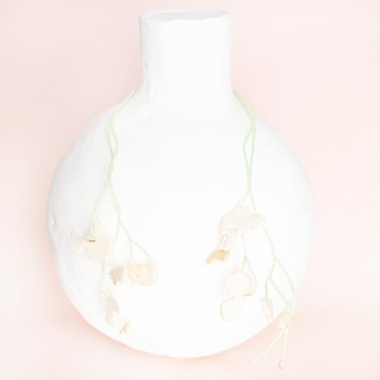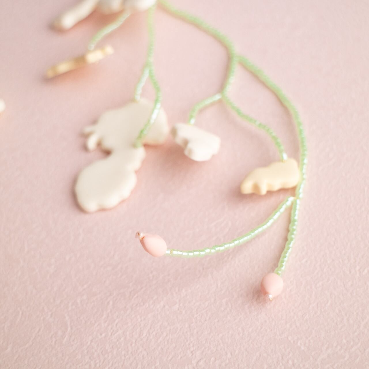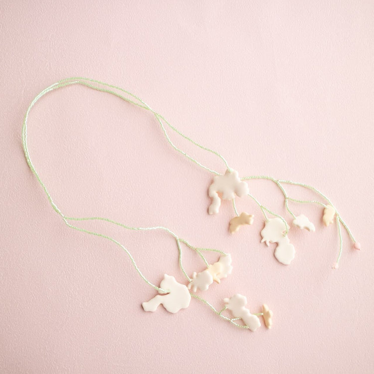 "보타닉"의 새로운 실험으로, 우리는 와이어와 비즈 등 다양한 소재를 기존의 점토와 결합했습니다.