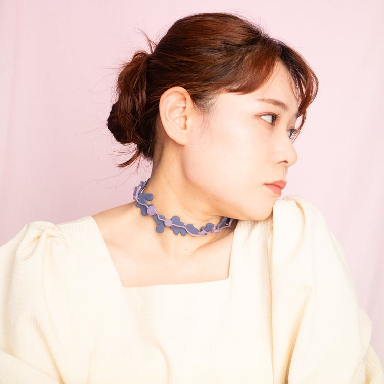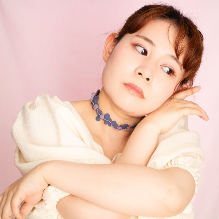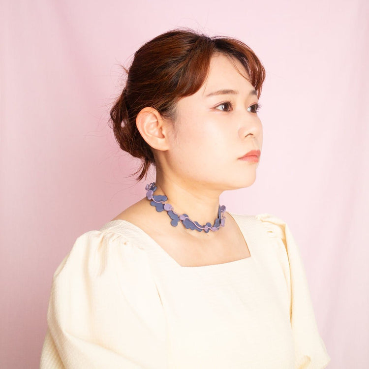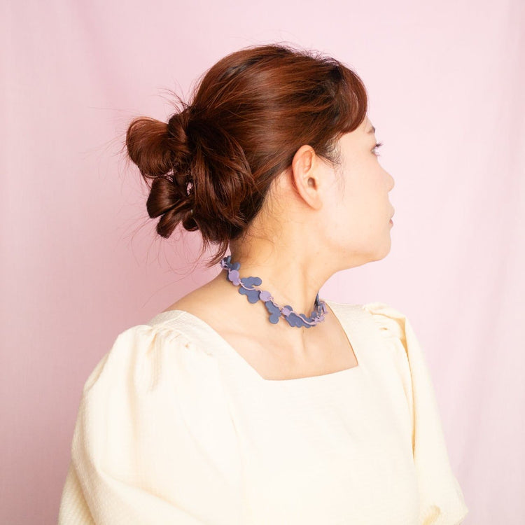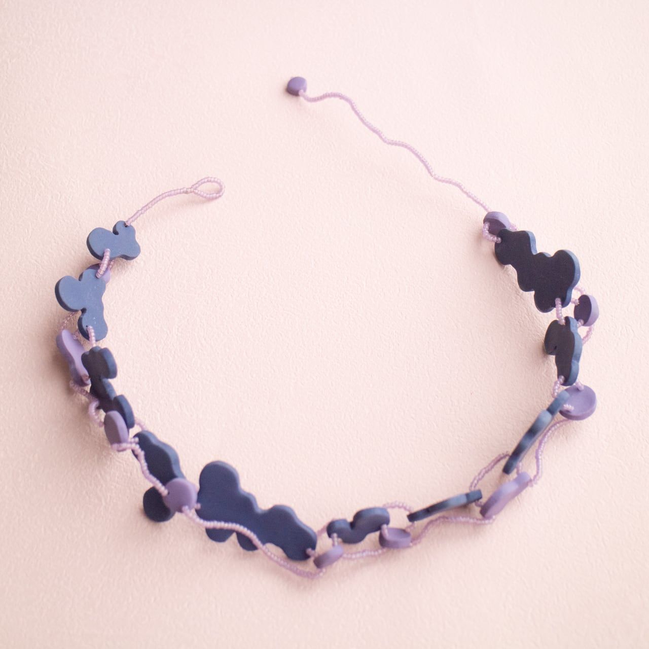 이 목걸이는 블루베리로 장식되어 있습니다. 겹치는 부분을 풍부하게 사용한 것이 포인트입니다.