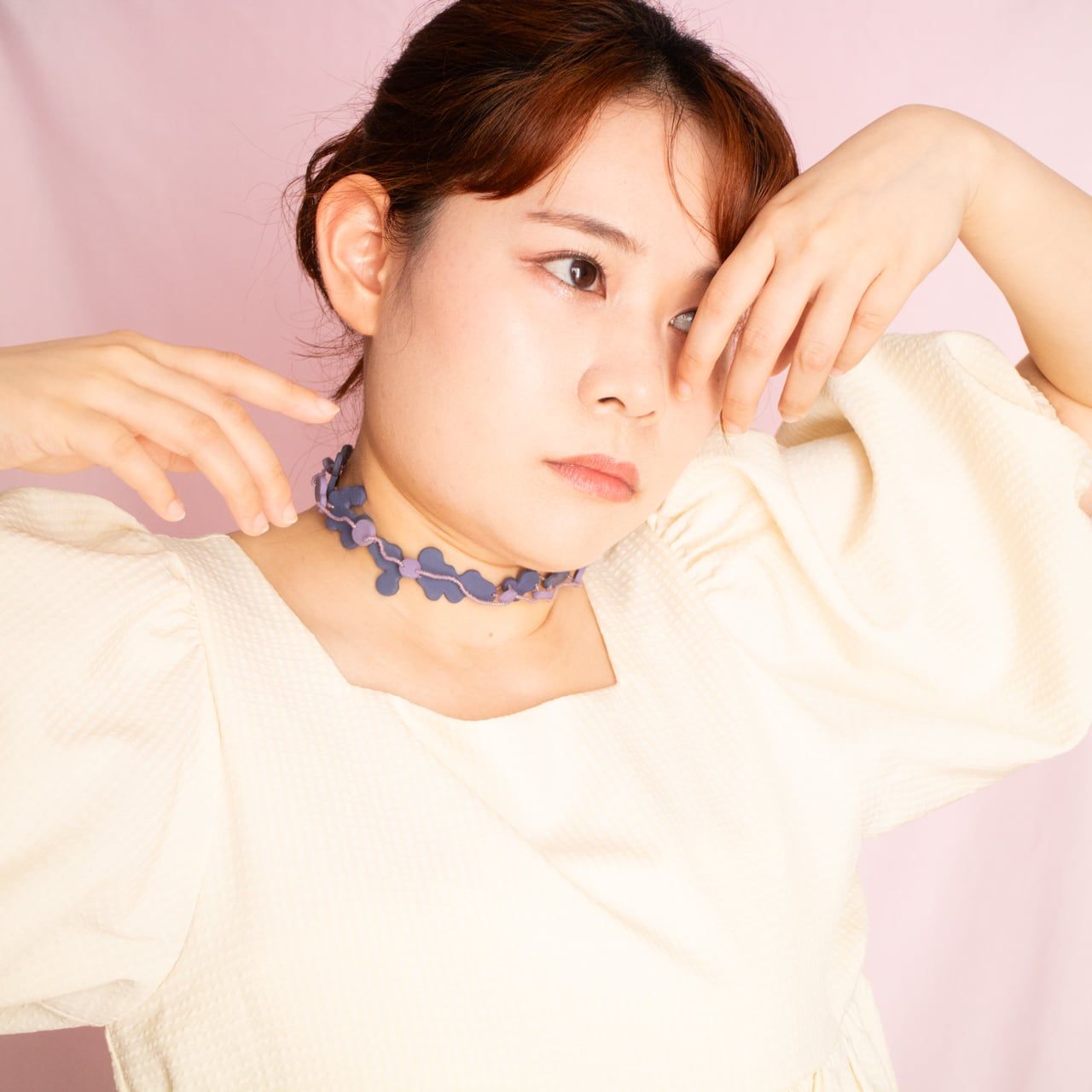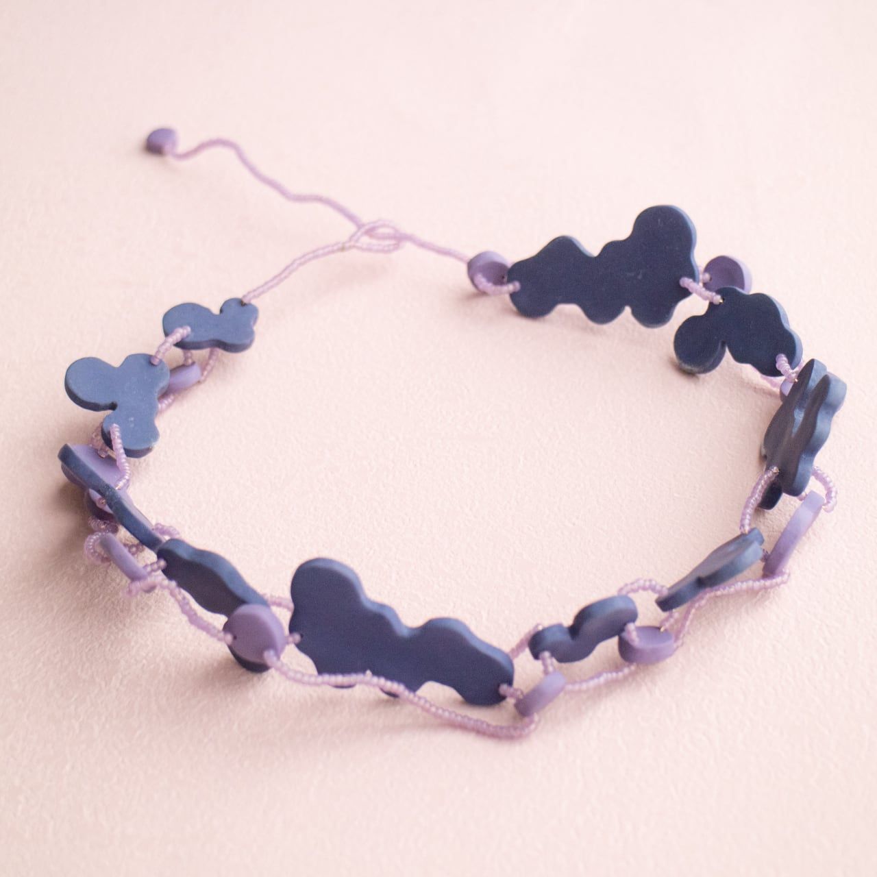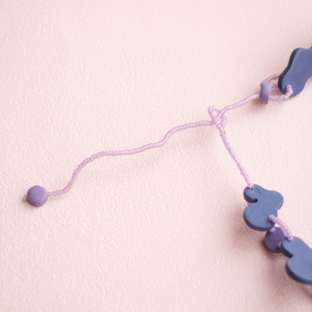 이 목걸이는 블루베리로 장식되어 있습니다. 겹치는 부분을 풍부하게 사용한 것이 포인트입니다.