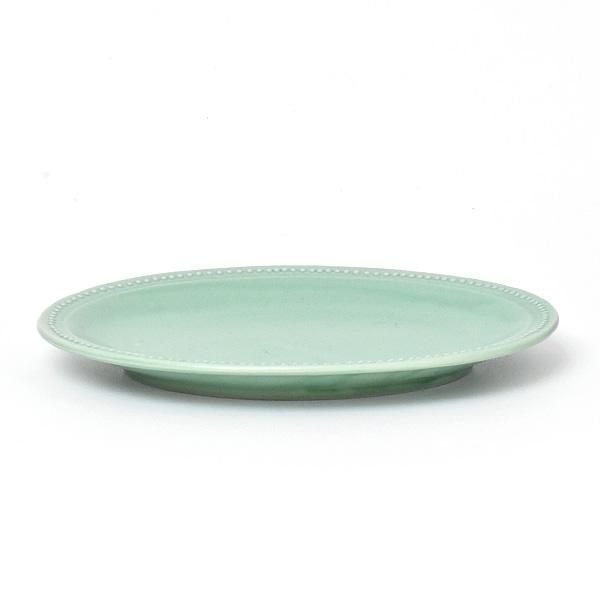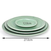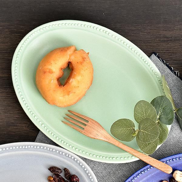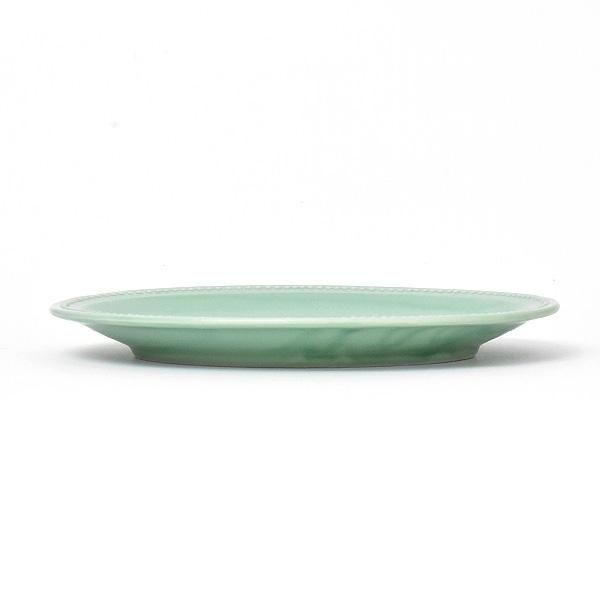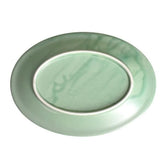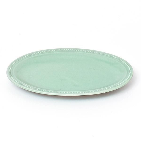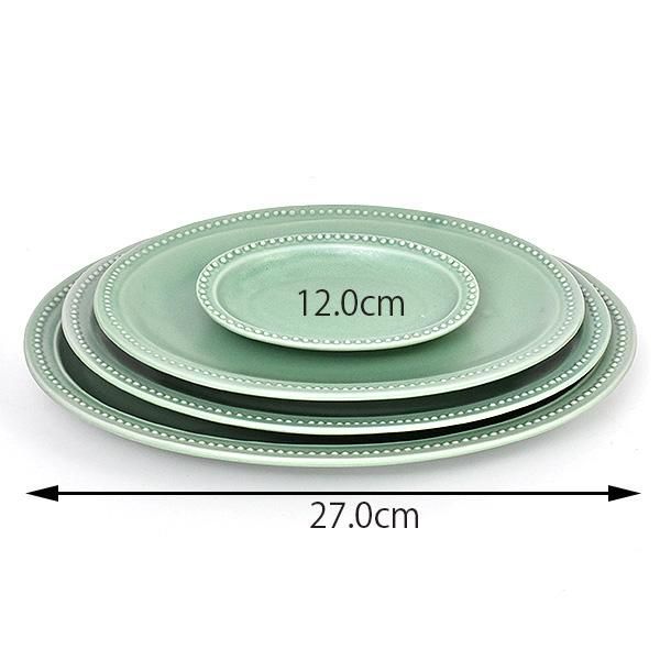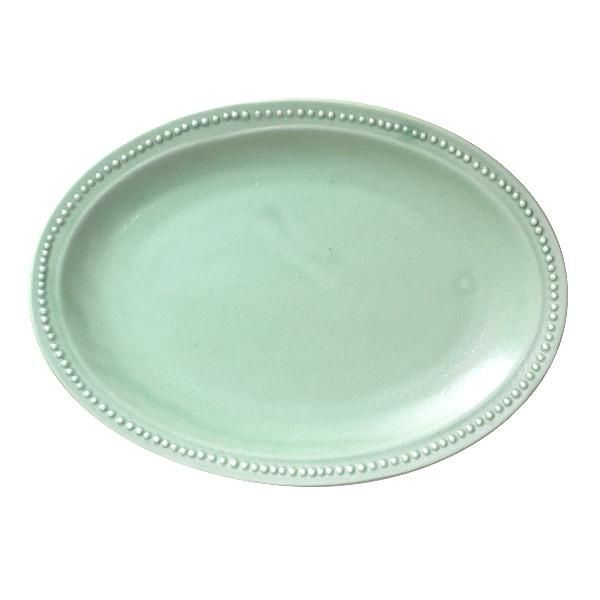 그린 림 도트 21 타원형, 녹색 글자, 서양 식기, 모양 접시, 일본산, 미노야키, 스타일리시함.