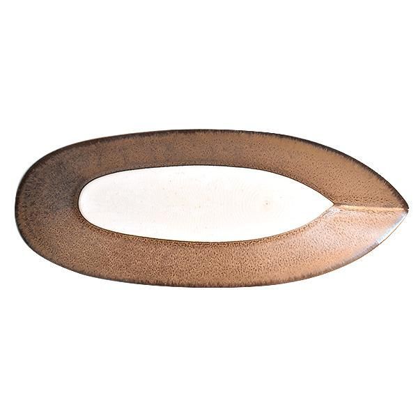 모아 가마 차 접시 32cm 롱 플레이트, 대형, 갈색, 서양식기, 플래터, 변형 접시, 일본산, 미노야키, 카페 스타일, 스타일리시, 모던
