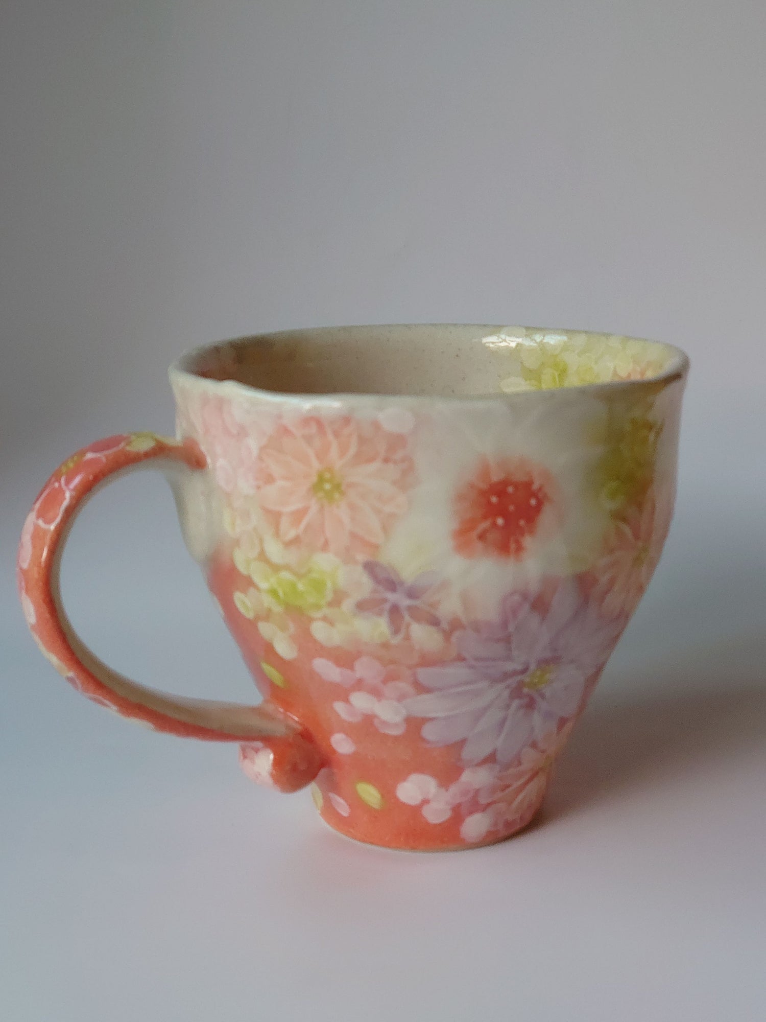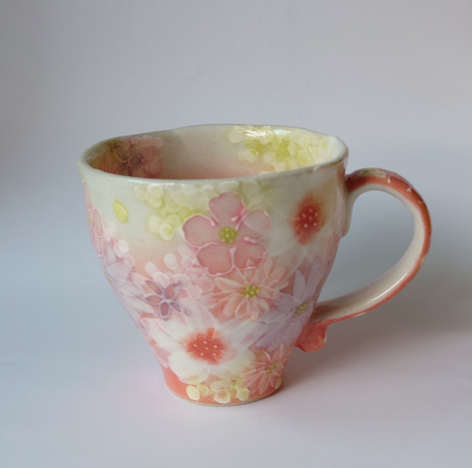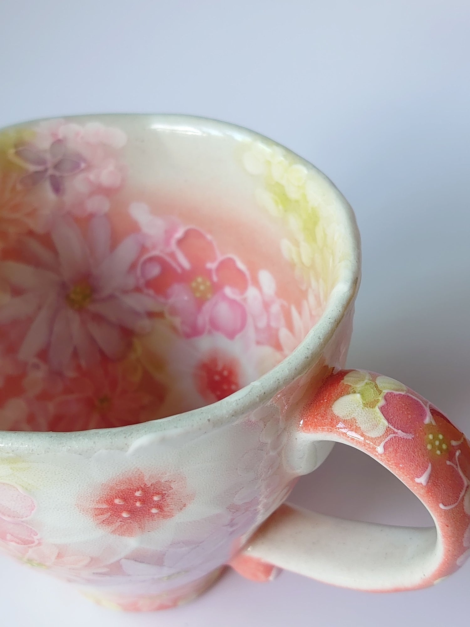꽃무늬가 섬세하게 그려진 유즈리하 머그잔.
