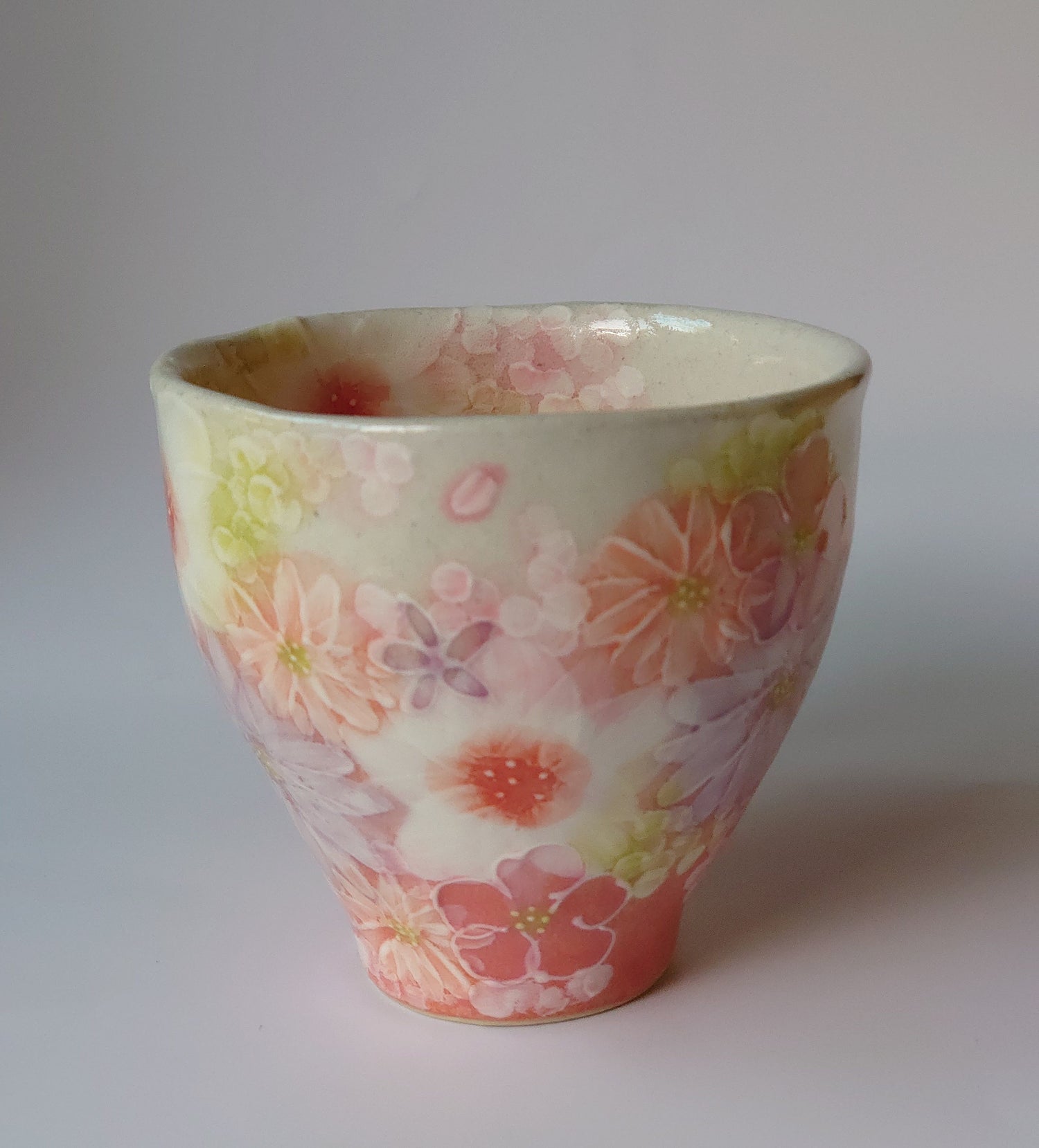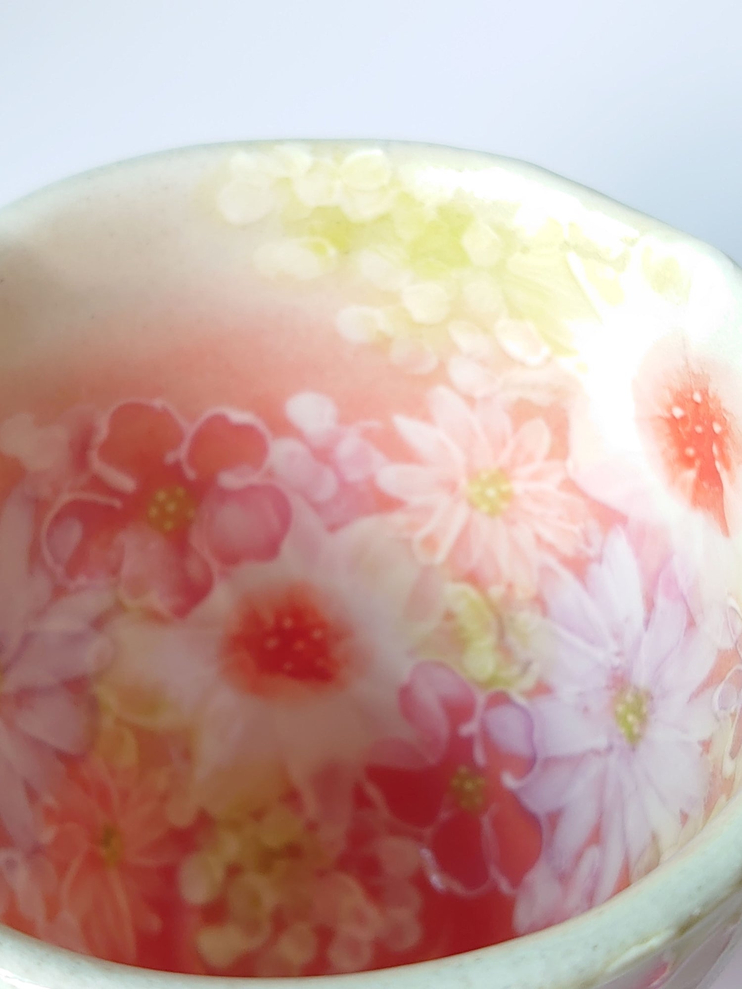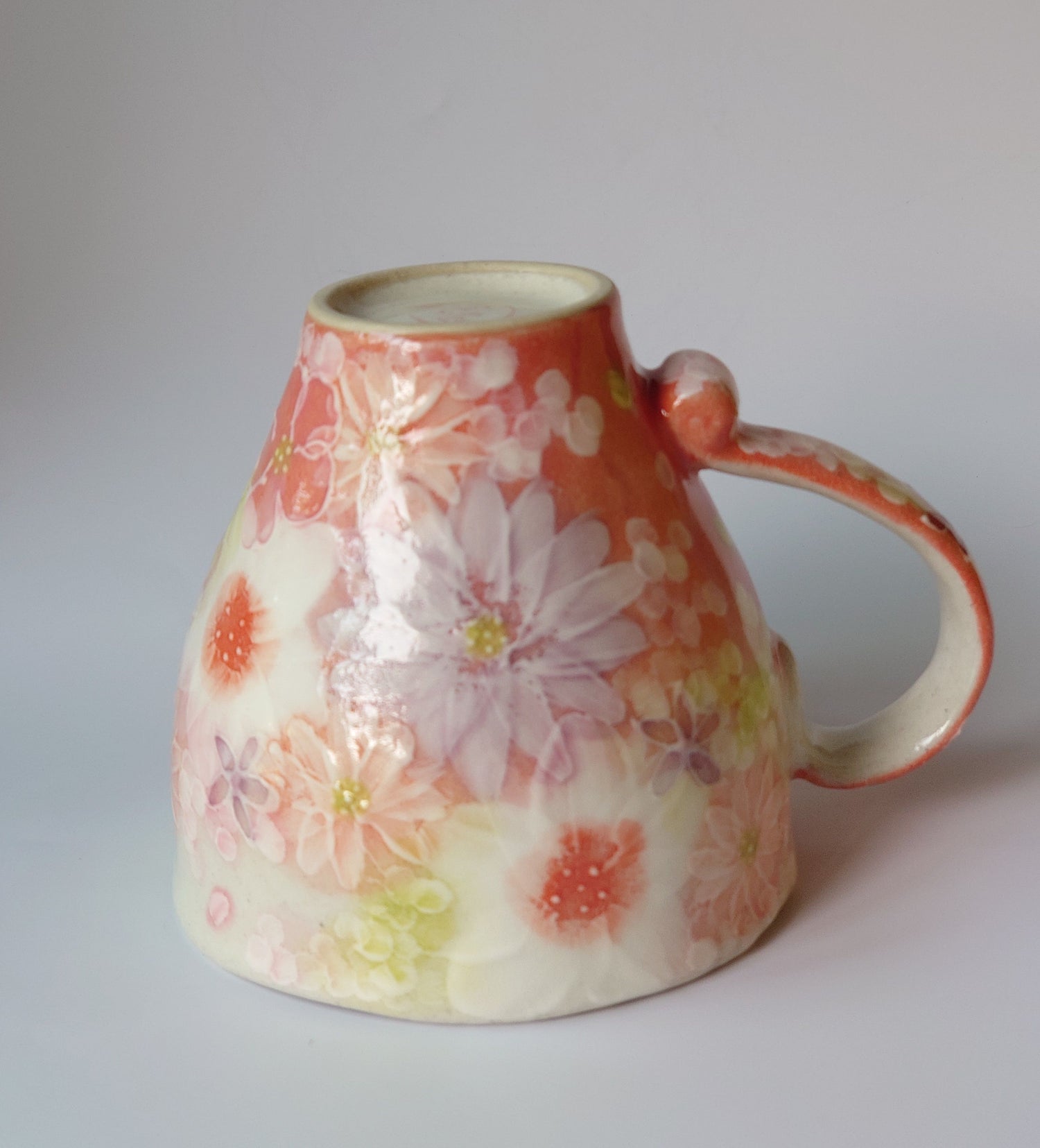 꽃무늬가 섬세하게 그려진 유즈리하 머그잔.