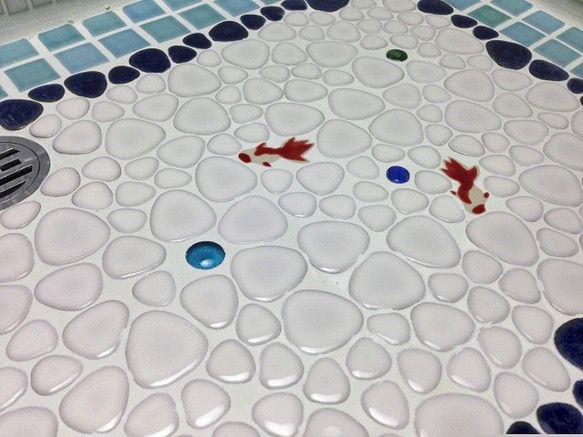 싱크대 사진은 골드피쉬 타일을 사용하여 설치한 예를 보여줍니다.