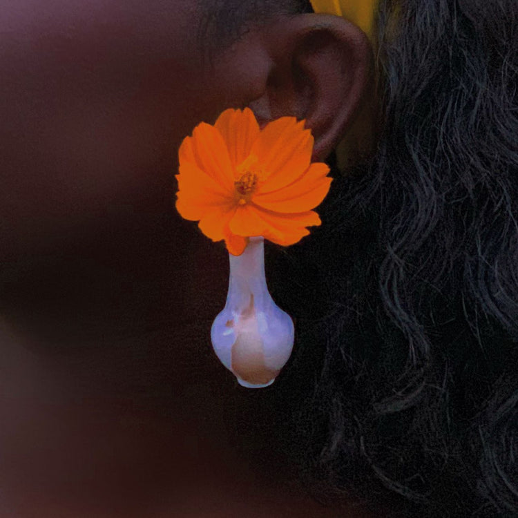 독특한 꽃병에 피어싱 귀걸이