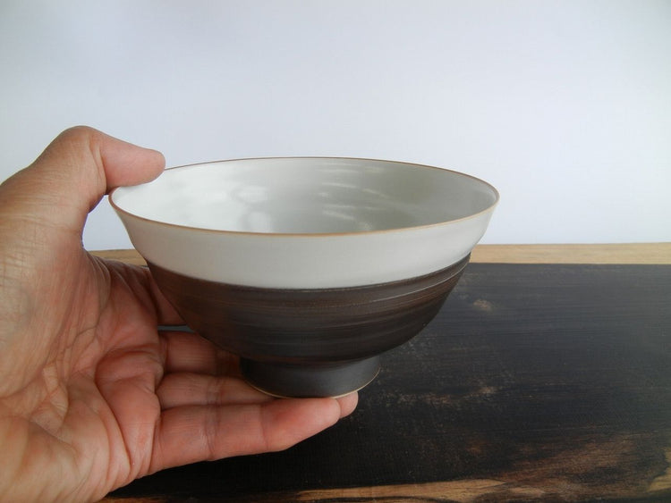 입술의 안쪽과 바깥쪽은 무광의 흰색 도자기로 유약을 칠하고 후치베니(적갈색)로 칠했습니다.