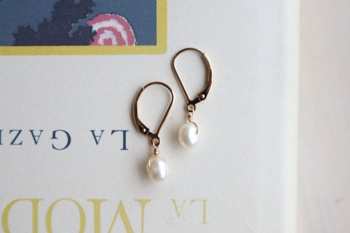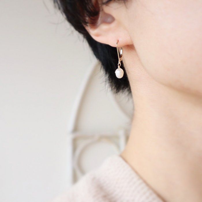 단순하지만 강렬한 존재감을 지닌 담수진주 감자 모양의 피어싱 귀걸이.