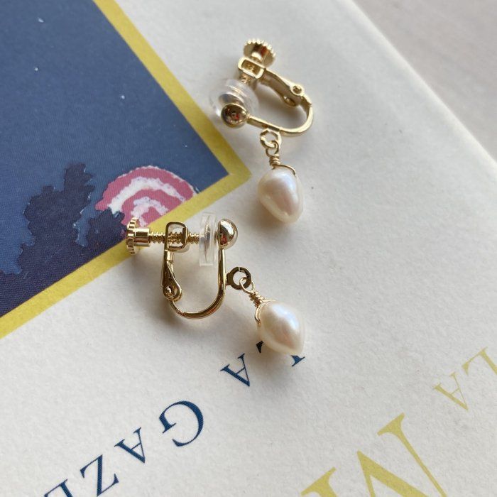 소재: 14KGF, 담수진주, 황동에 GP(클립온 귀걸이 하드웨어)
