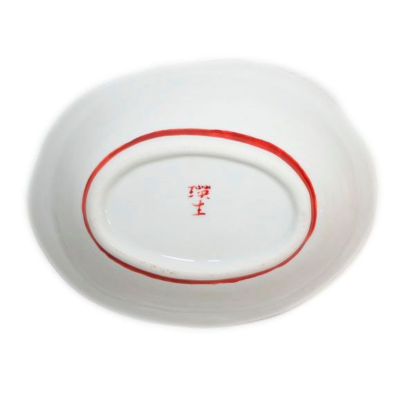 [에이세이] 붉은색 물방울 무늬가 들어간 6각형 타원형 그릇