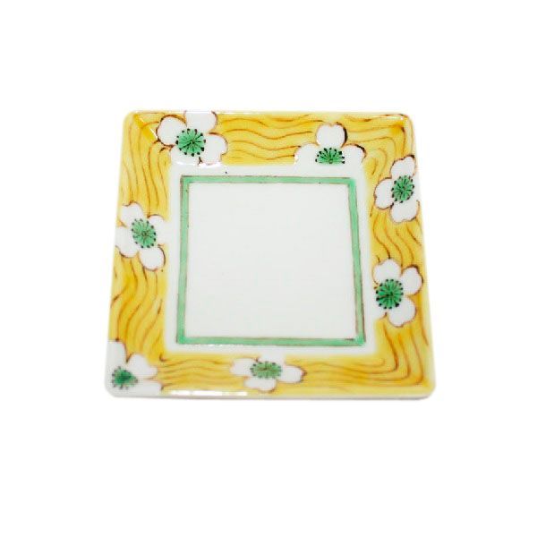 이 매화 무늬는 고쿠타니에 그려진 도안으로, 노란색이 풍수에 좋다고 하는 사람들도 있습니다. 다리가 달린 육각형 접시도 함께 있습니다.