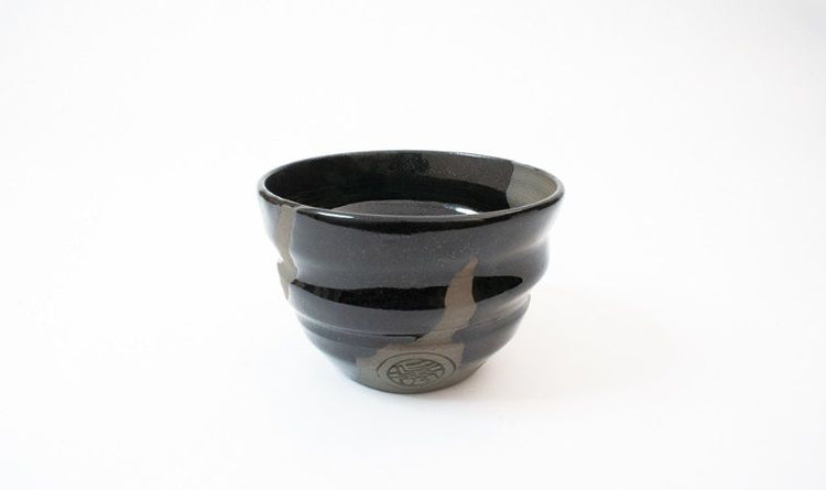 유약을 칠하지 않은 도자기에 칠해진 검은 유약의 역동적인 디자인은 대담함과 성실함을 결합한 것입니다.