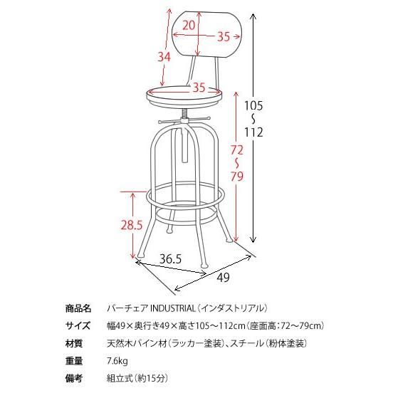 This bar chair from the [INDUSTRIAL] series is designed for everyday use while taking advantage of its industrial-like sturdiness.