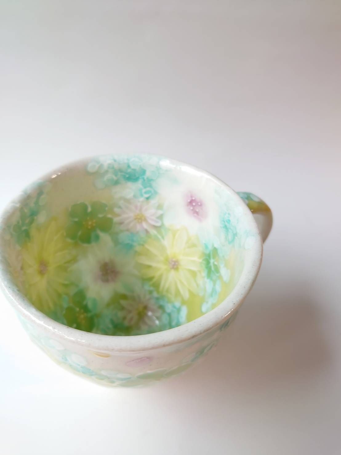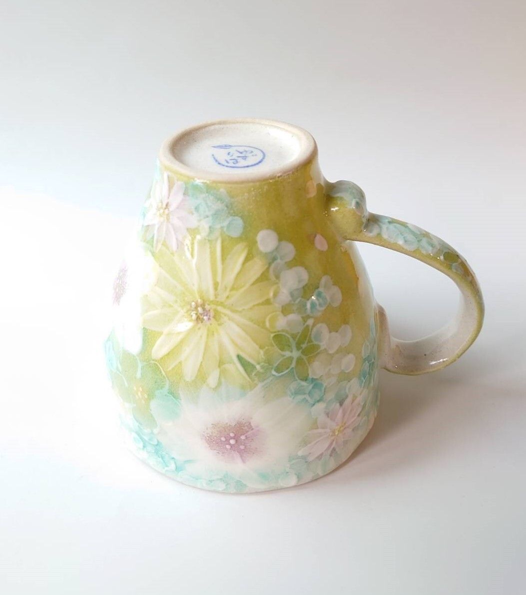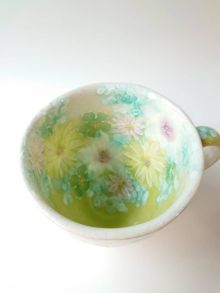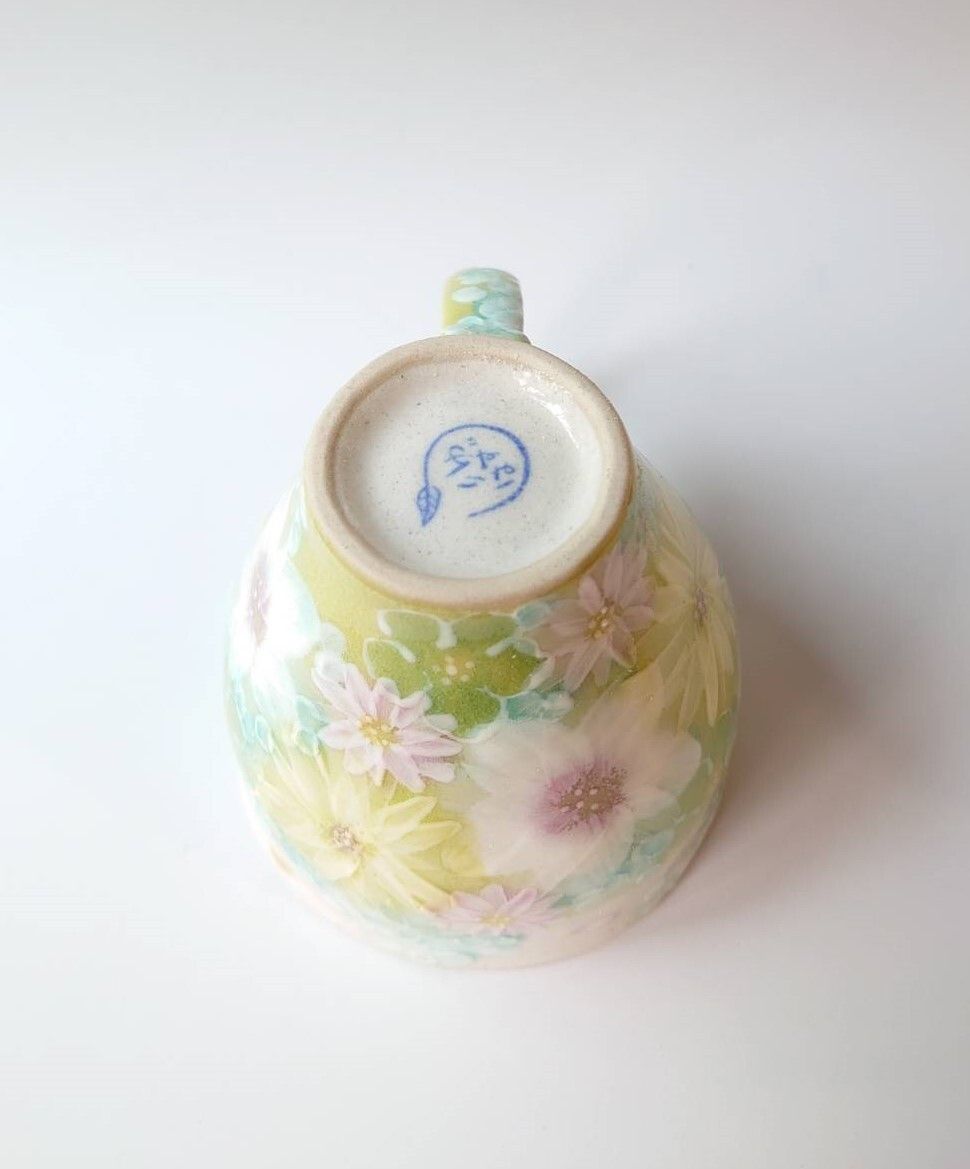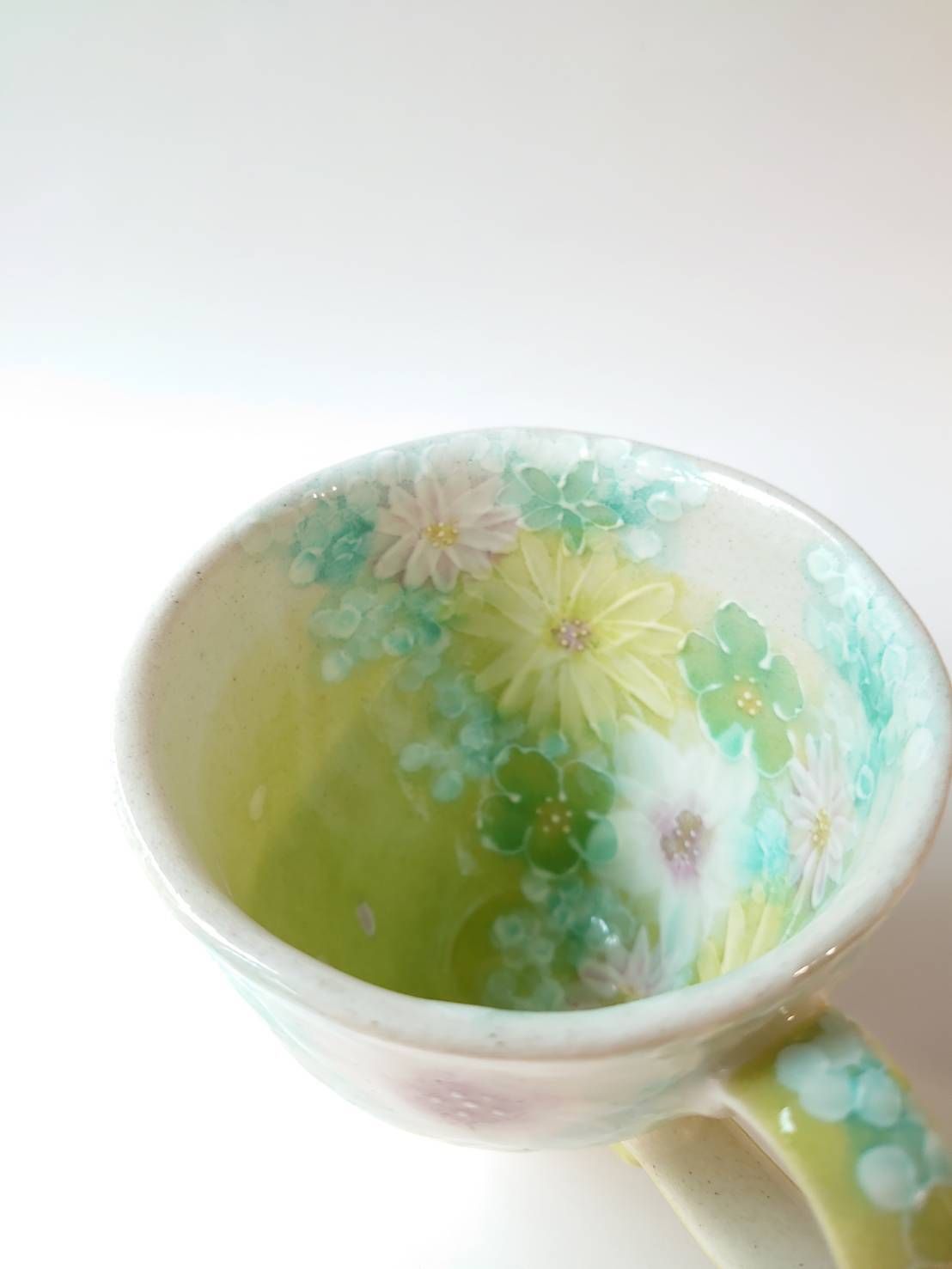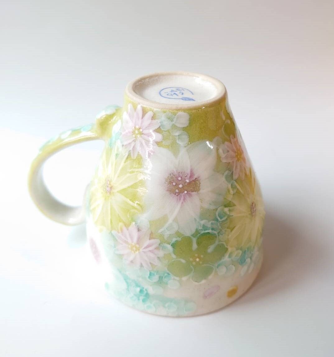고보 유즈리하 머그컵, 은은한 녹색 색상에 섬세한 꽃무늬가 매우 아름답습니다. 53385