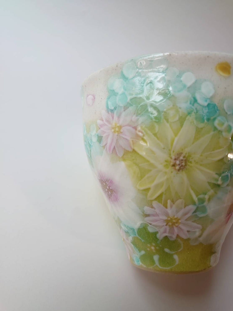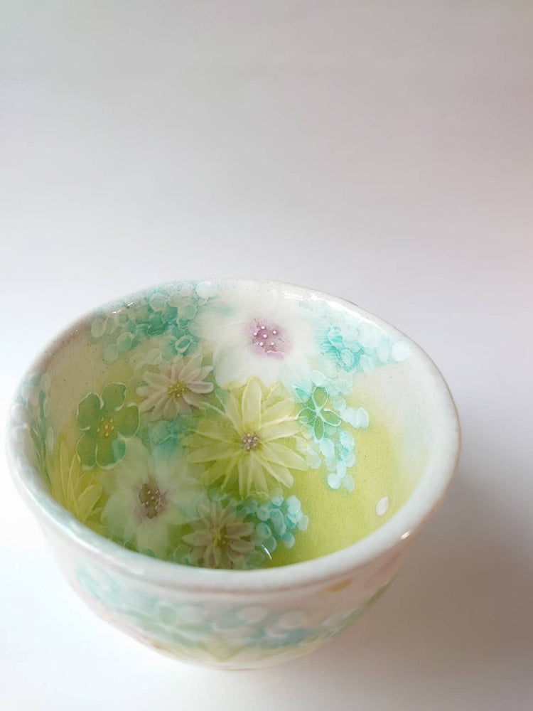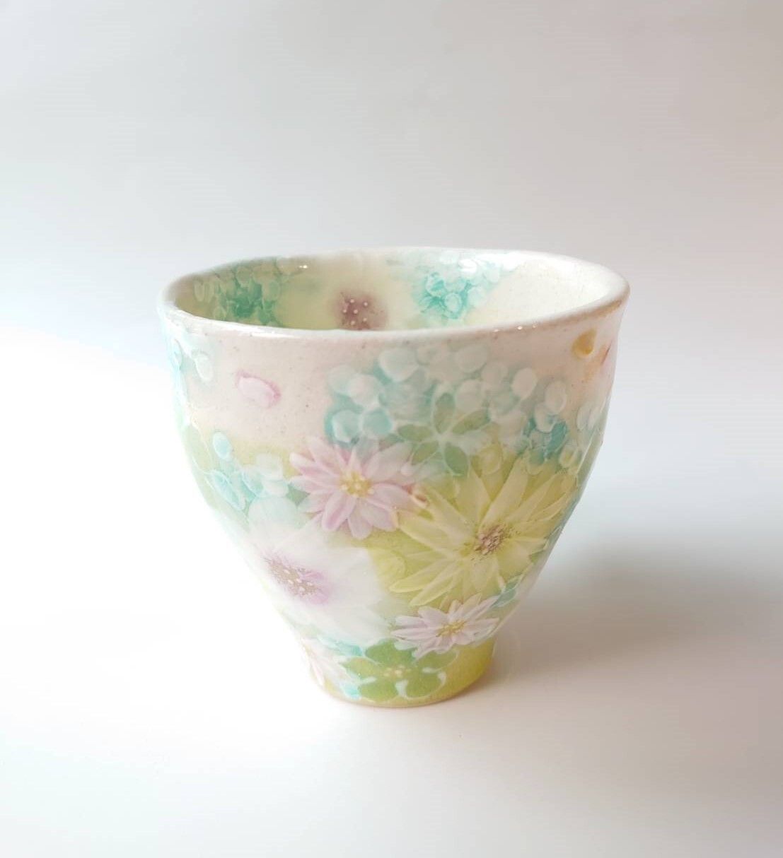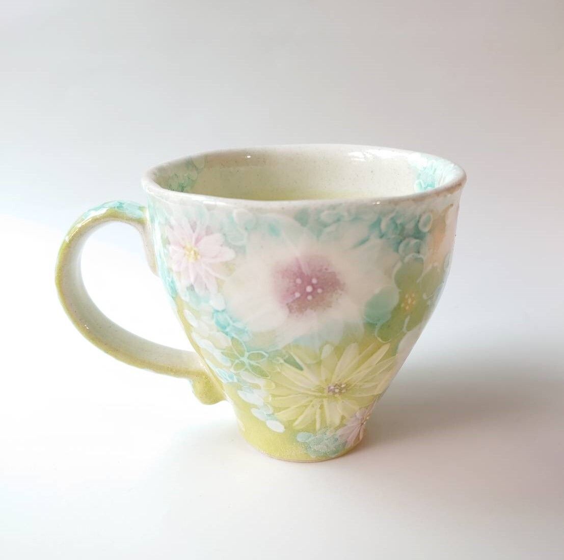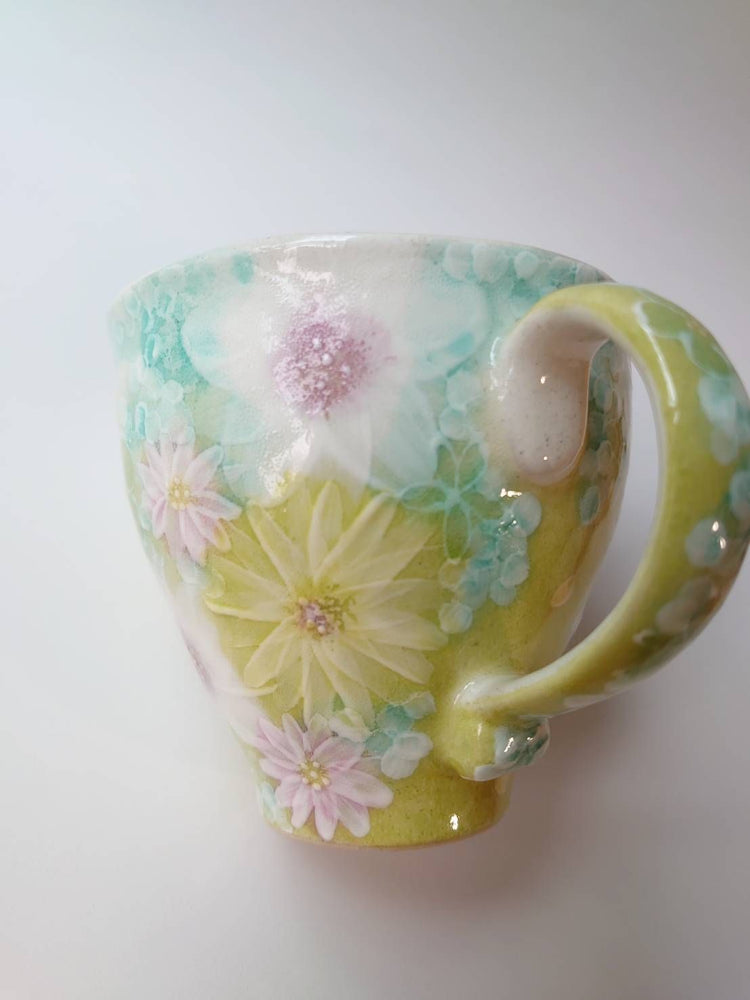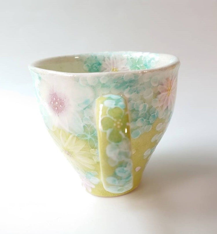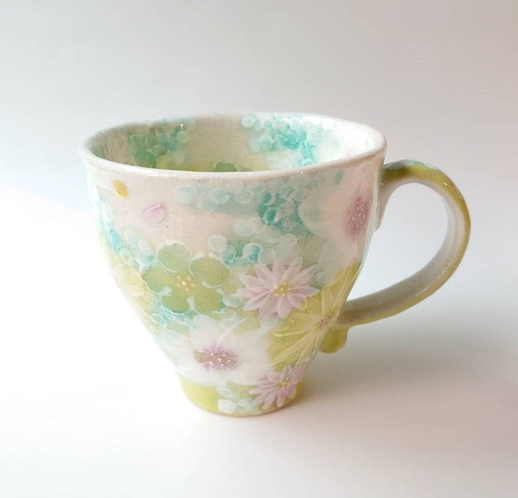 고보 유즈리하 머그컵, 은은한 녹색 색상에 섬세한 꽃무늬가 매우 아름답습니다. 53385