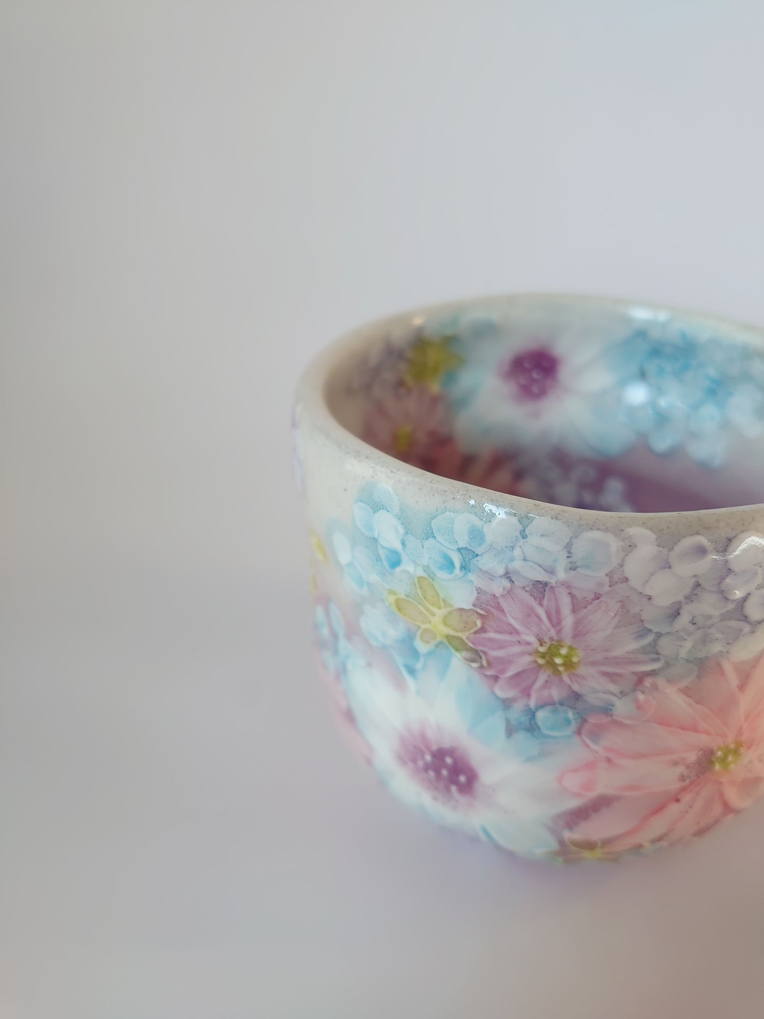 코보 유즈리하 후쿠후 그릇, 연보라색 꽃무늬가 매우 아름다운, 다채로운 꽃 43111