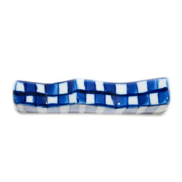 하토야도사마(八屋師)에 보관되는 청화(靑畵) 체크무늬 붓꽂이(붓받침)입니다. 굵은 붓과 가는 붓을 나란히 놓을 수 있도록 설계되었으며, 젓가락 받침으로도 사용할 수 있습니다.