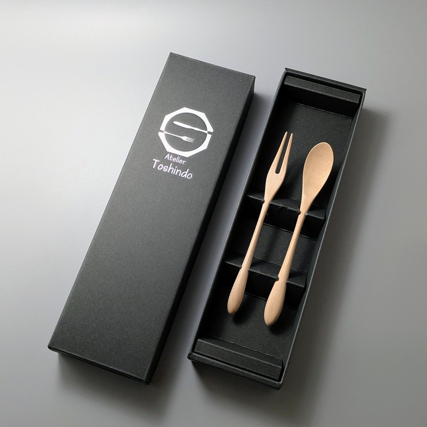 This maple wood cutlery set is finished in natural colors with water-repellent paint.