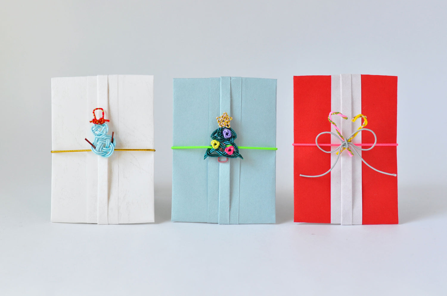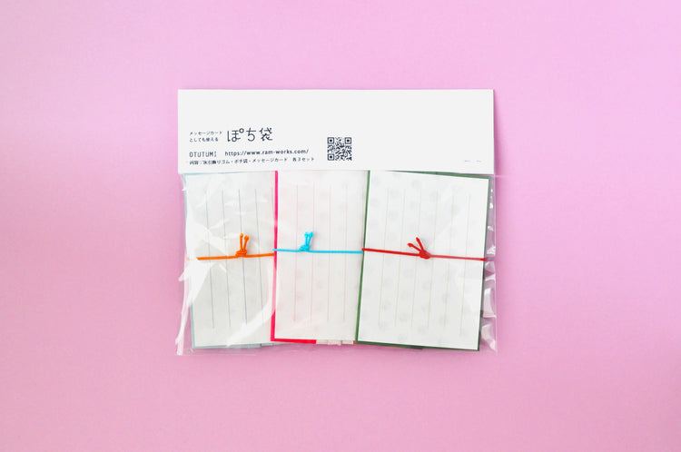 고무끈이 달린 미즈히키 장식, 와시지 오리지미 포치부쿠로, 메시지 카드(각 3세트)