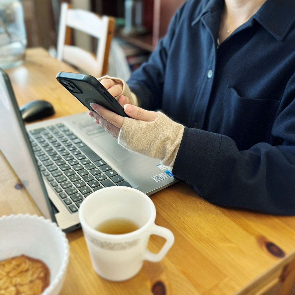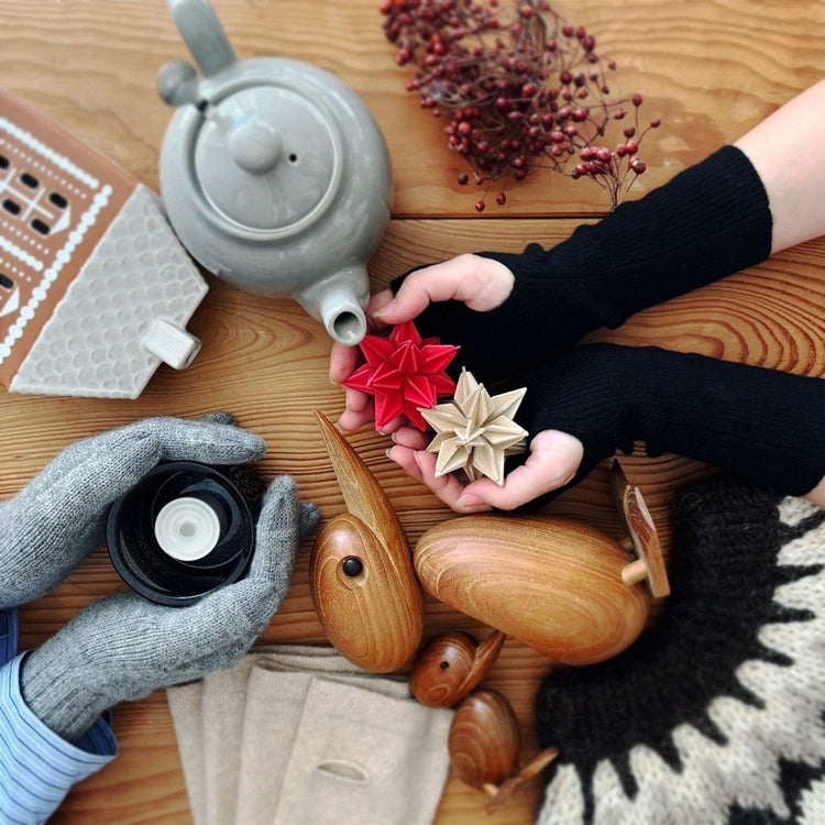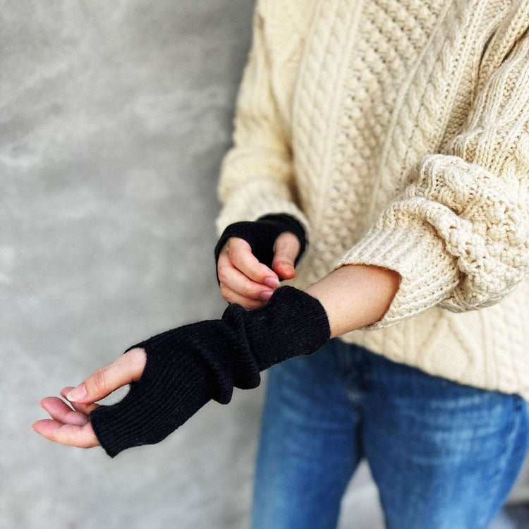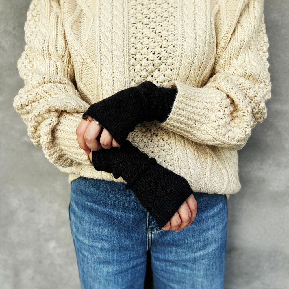 100% cashmere arm warmers that gently wrap around your hand and keep it warm.