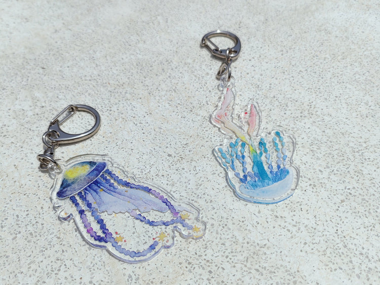This key chain is made of acrylic material.