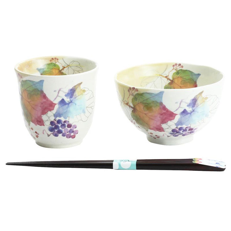 Hanatsumi rice bowl/teacup, grape (with Tenpou chopsticks)(04271)