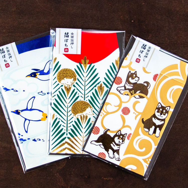 This cute and auspicious design combines traditional patterns such as the Daio pine tree, running water pattern, and arabesque pattern with animals with adorable expressions.