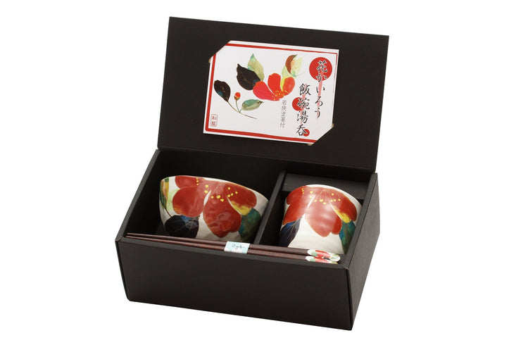 Flower Kairo rice bowl and teacups, yamacha flower (with tenpou chopsticks)(40481)