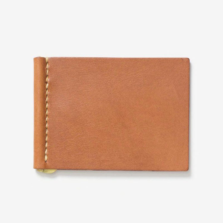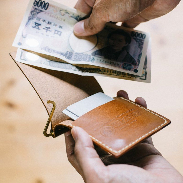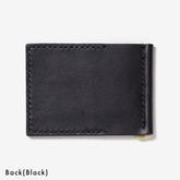 This is a money clip with a pocket to carry money and a card lightly in your pocket. It is made simply, taking advantage of the natural texture of leather.