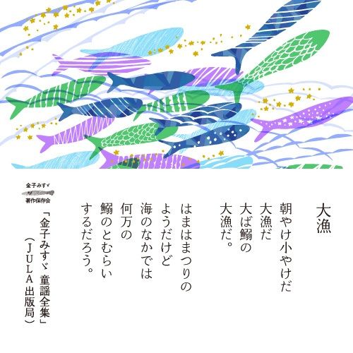 The design is inspired by the poem "Big Fishing" written by the children's song poet Misuzu Kaneko.
