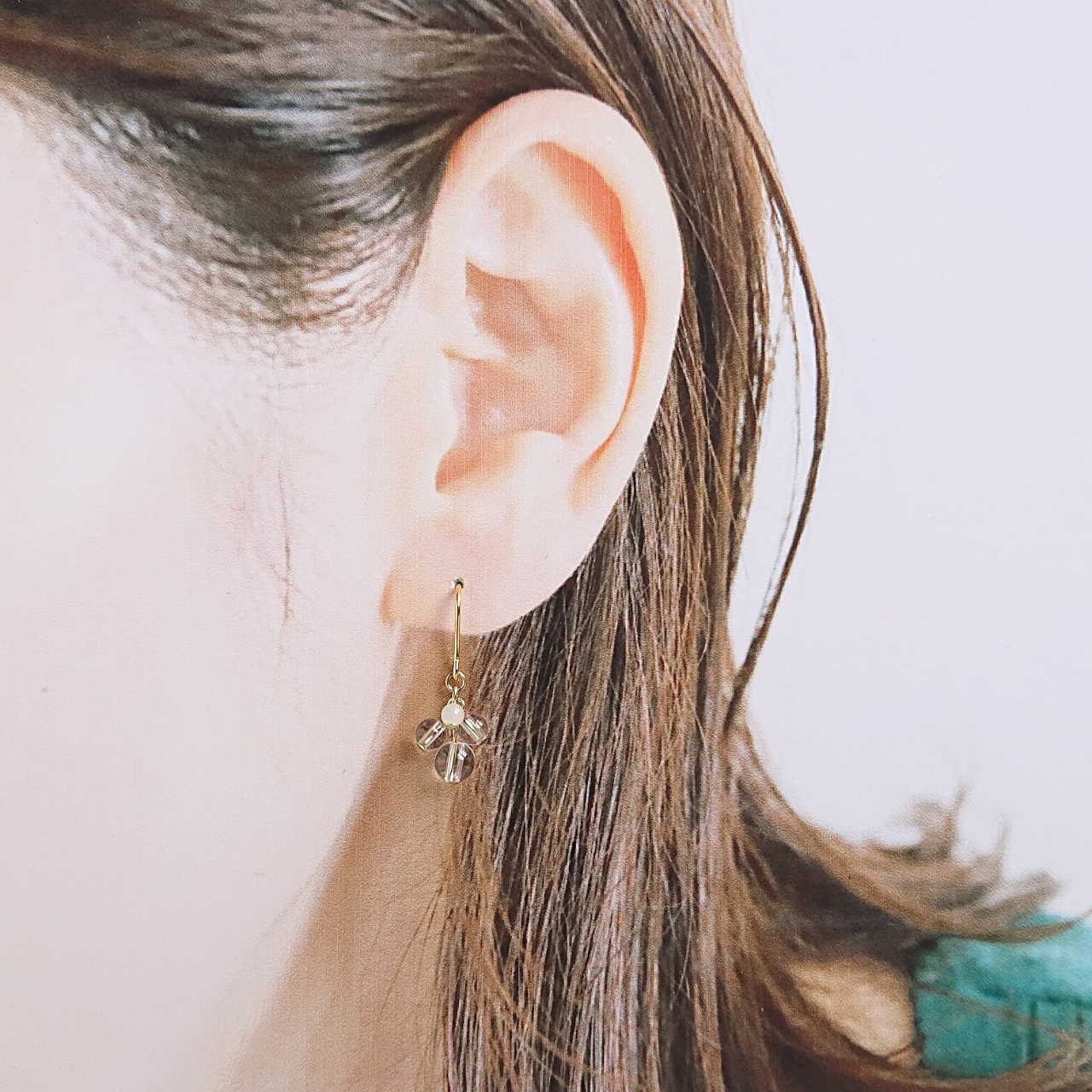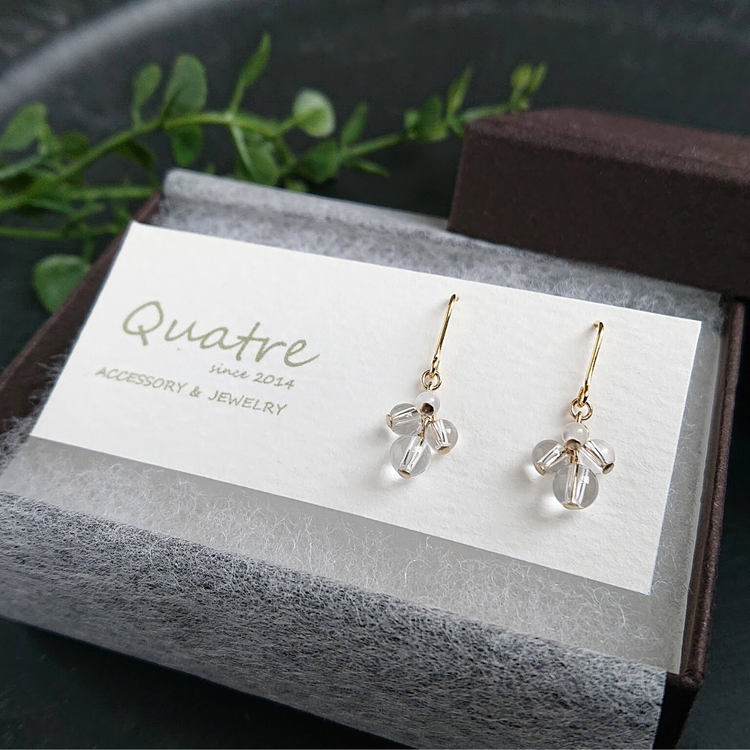 Three transparent and beautiful crystals and one small mother-of-pearl are placed at the points.