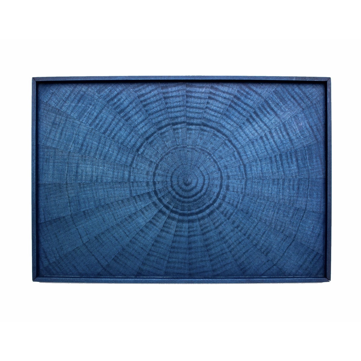 By laminating veneers cut at an acute angle around the center of the tray, the tray looks as if rays of light are coming from the center of the veneer.