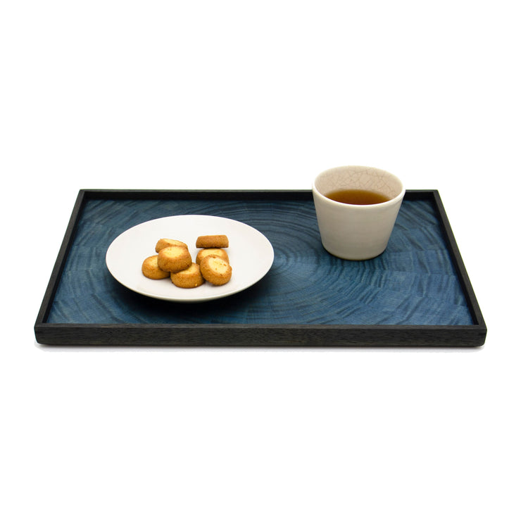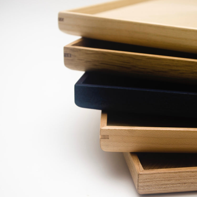 The Rays Tray is a product that takes advantage of the characteristics of the wood grain, which appears different colors depending on the angle of the light and the direction from which the tray is viewed.