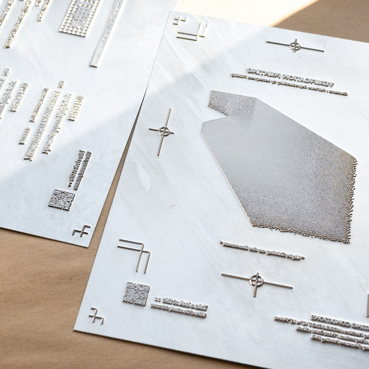 This product is full of craftsmen's skill and playful spirit, as they explored how far they could reproduce detailed expressions and gradations in letterpress printing, which is said to be difficult to print delicate patterns. By daring to print trim marks that are normally cut off, the design looks like a graphic poster in the process of production. We hope you will enjoy the attention to detail and the printing pressure applied to every single dot.
