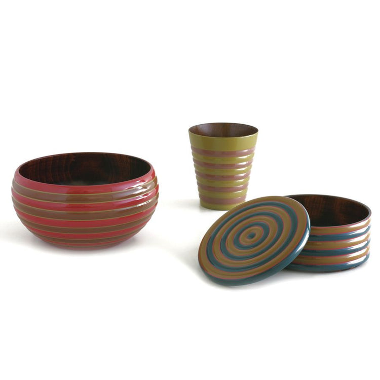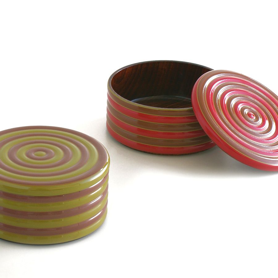 This series is based on the Dokugaku pattern, which has been popular in Japan for centuries, and is now available in new shades of lacquer based on traditional Japanese colors. This is a masterpiece that combines the excellent woodworking technique [rokuro-hiki] and new tints of lacquer coating.