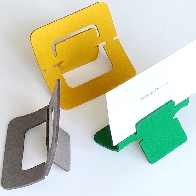 This card stand has a simple and casual presence that is gentle on test tops, tables, etc. It may be used as a communication tool by inserting cards such as business cards or messages. It may also be functional as a stand for simple captions for product displays. The flat card style is recommended for casual gifts.