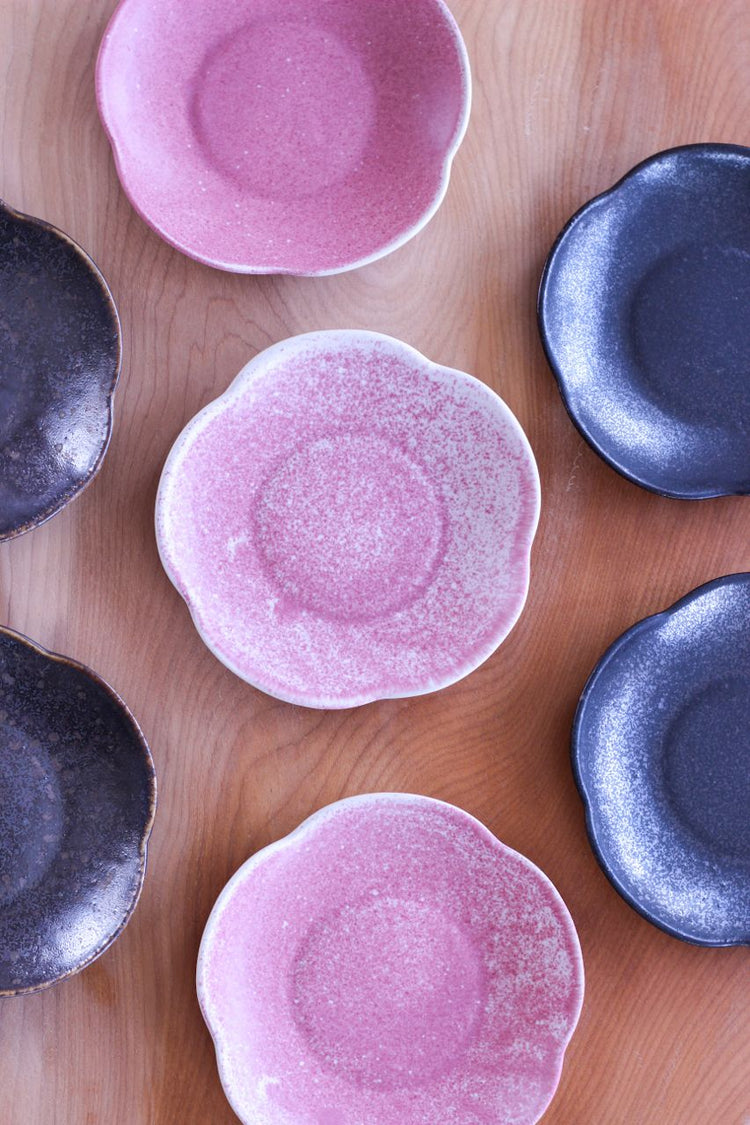 This flower-shaped dish adds a lovely and sophisticated beauty to your dining table. This flower-shaped dish is glazed in sumi-black, a simple yet striking color that blends wonderfully with any dish. Designed with ease of use in mind, it will be a great addition to your everyday dining table as well as for entertaining. Because they are handmade, each piece has its own unique texture and charm. We hope you will enjoy a hearty dining experience with this flower-shaped plate by serving your favorite dishes.