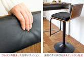 The bar chair has a wooden seat frame made of natural wood veneer with beautiful wood grain, and a backrest and seat made of synthetic leather with a good texture and filled with urethane for excellent seating comfort.
