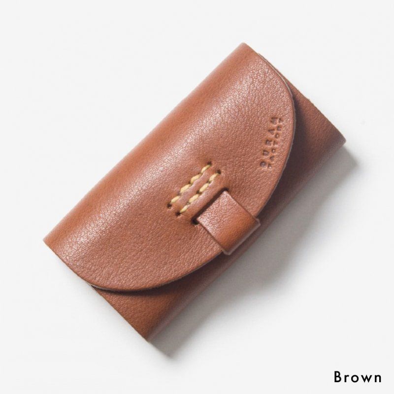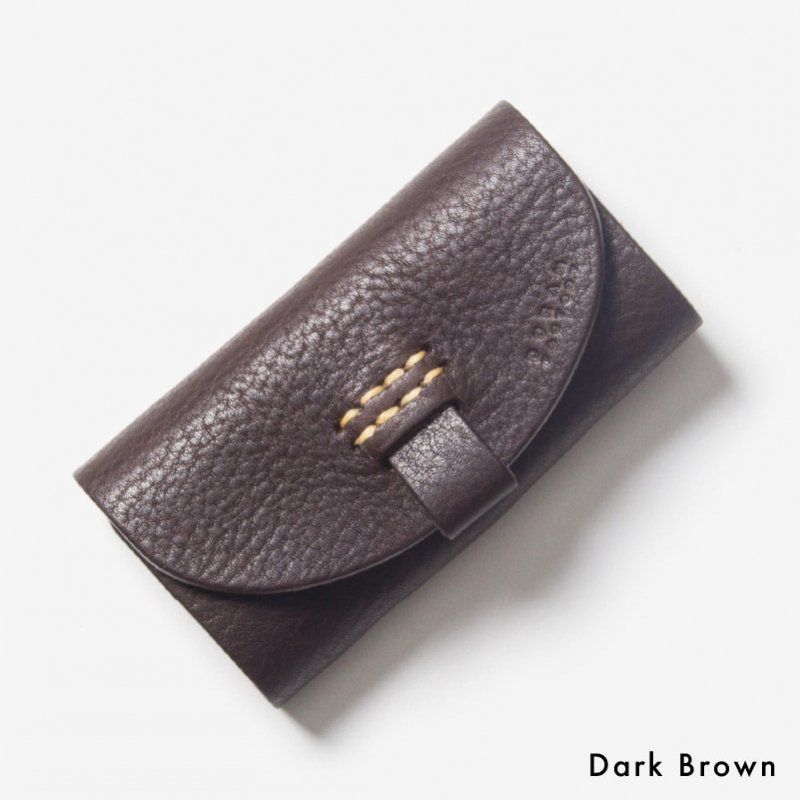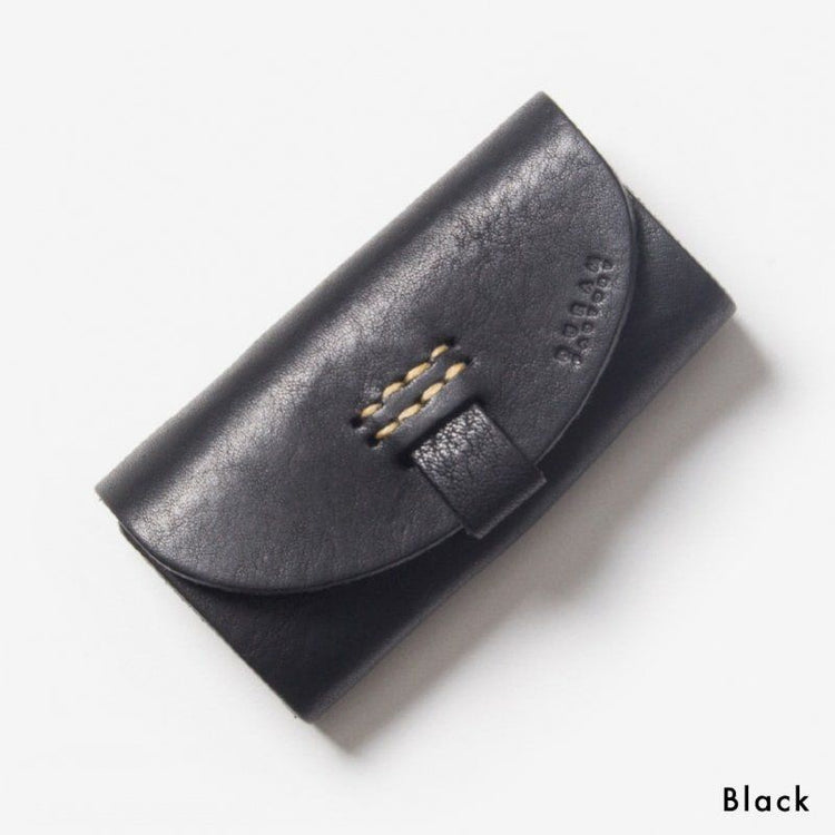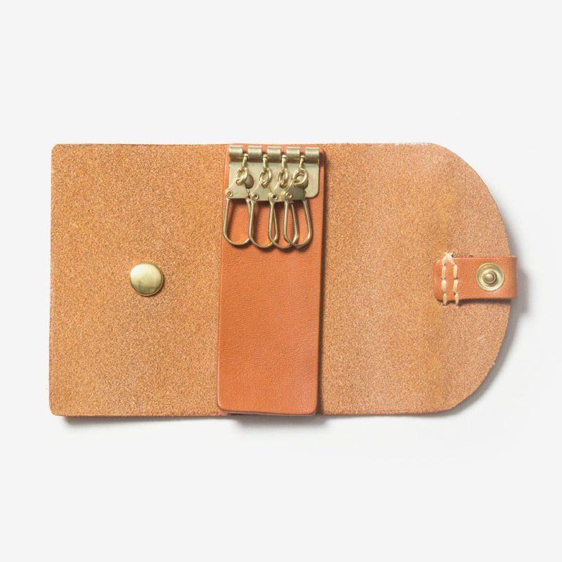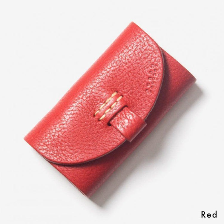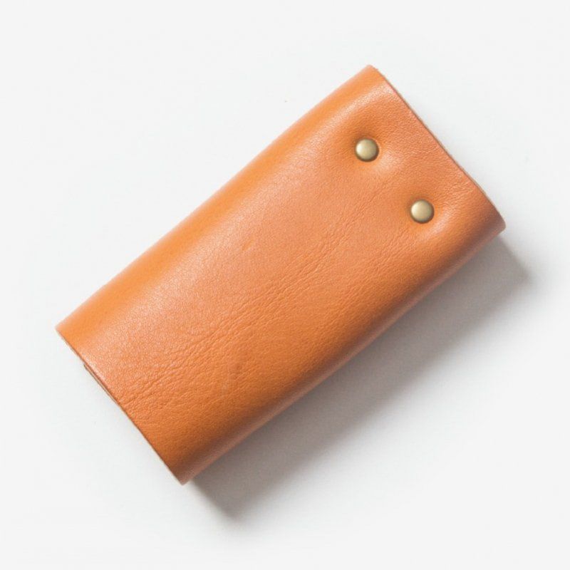 A simple key case made of leather with a natural texture. The leather is soft to the touch with small wrinkles called "shibo" appearing. It wraps your keys completely, so it won't damage other things in your bag or pocket.