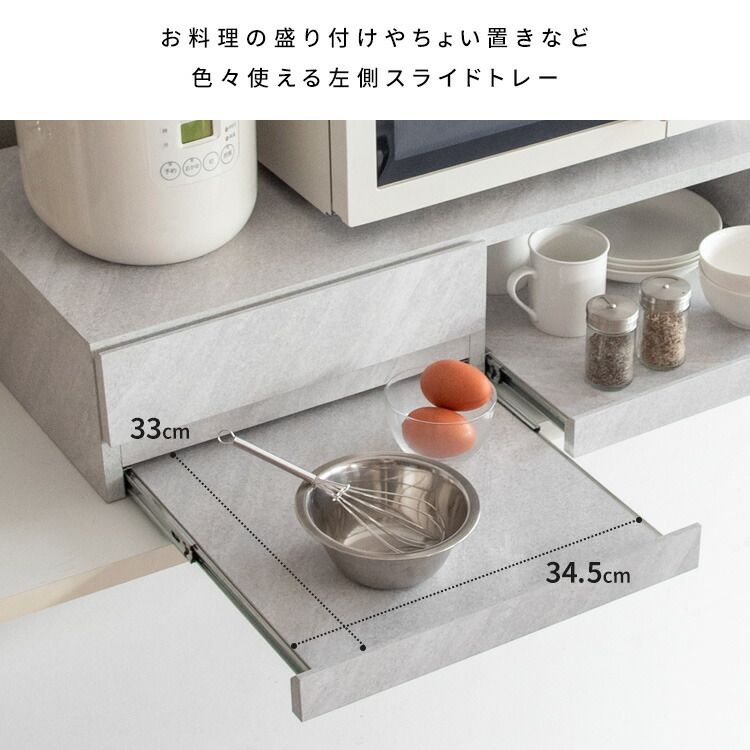 The convenient slide-out tray can be pulled out only when necessary, so it does not get in the way when not in use. There is also drawer storage for cutlery and kitchen accessories.