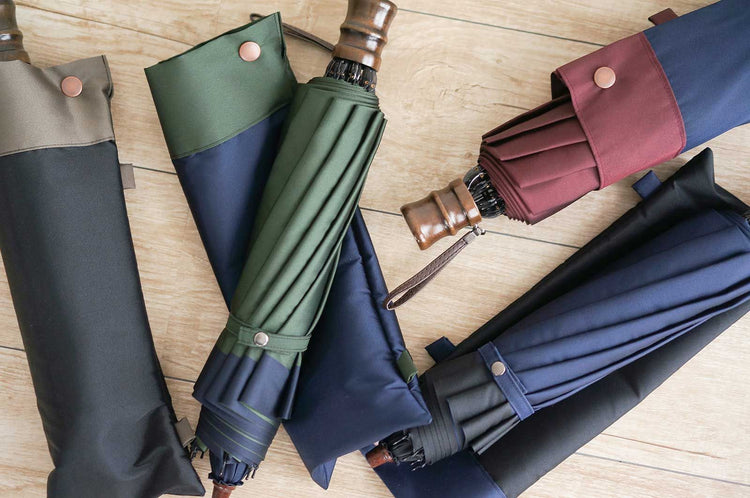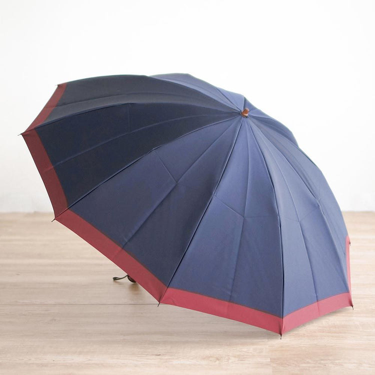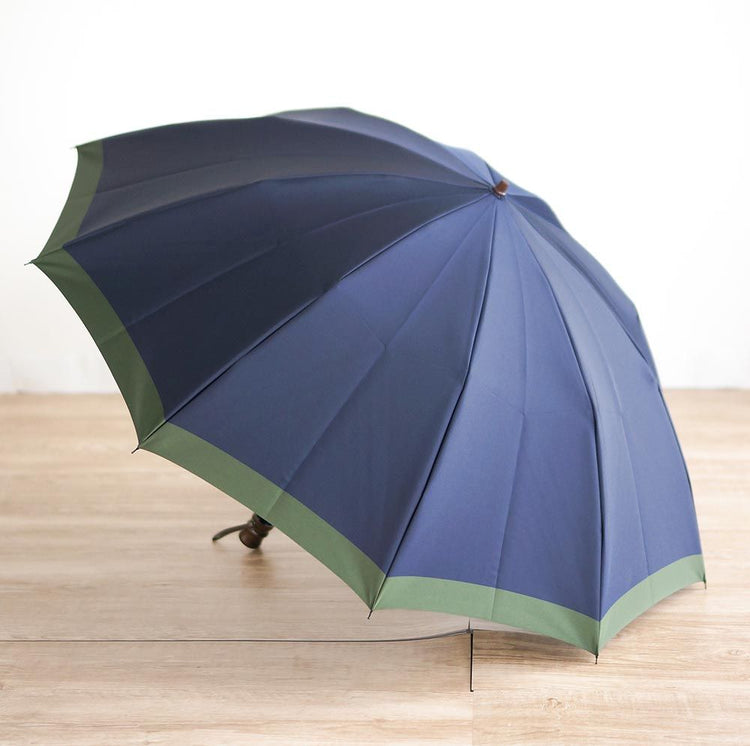 This is a long-selling men's rain or shine folding umbrella that allows you to enjoy the overlapping colors of the front and back.