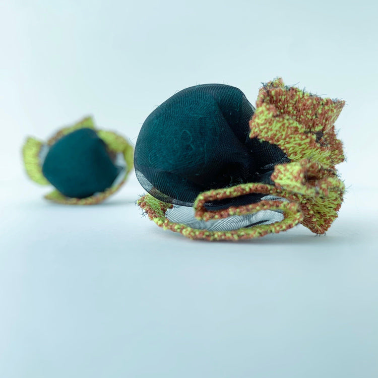 This is a large, lightweight accessory with wool trapped in free-motion embroidered organdie.