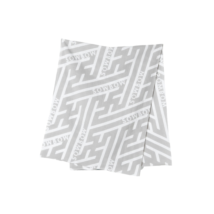 A hand towel with the SOWBOW logo placed on the overall pattern of a swastika motif.