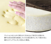 The thick cushion with a sense of presence is a glutinous cushion made of low rebounding urethane that gently sinks into the ground. It supports your waist well and does not wear out easily, so you can use it for a long time.