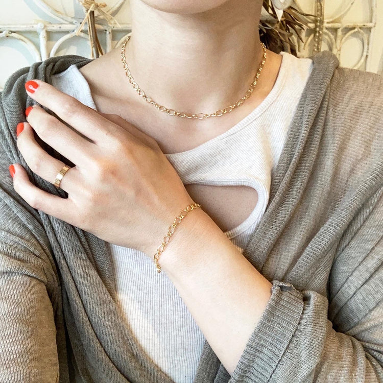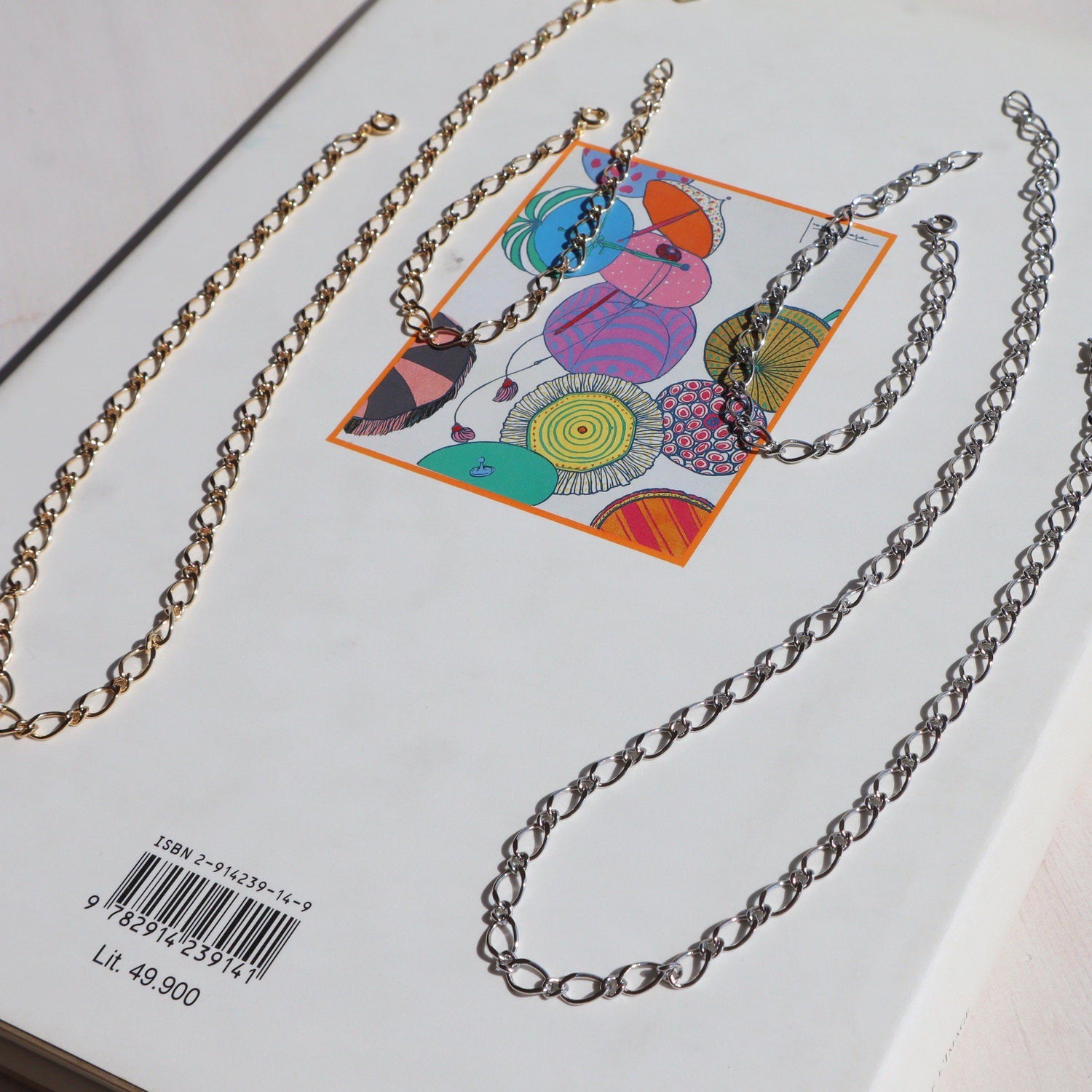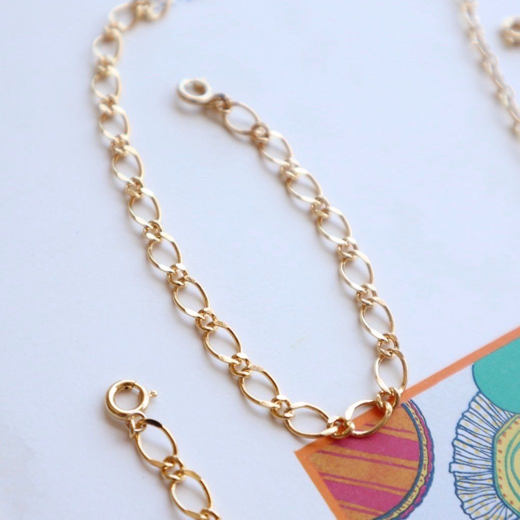 Compared to a chain with a series of equal sized pieces, the Figaro chain has a more elegant look, giving it a simple yet glamorous impression.