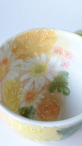 Studio Yuzuriha mug, very beautiful with an impressive pattern in bright yellow. Yellow colored painted flowers 45577