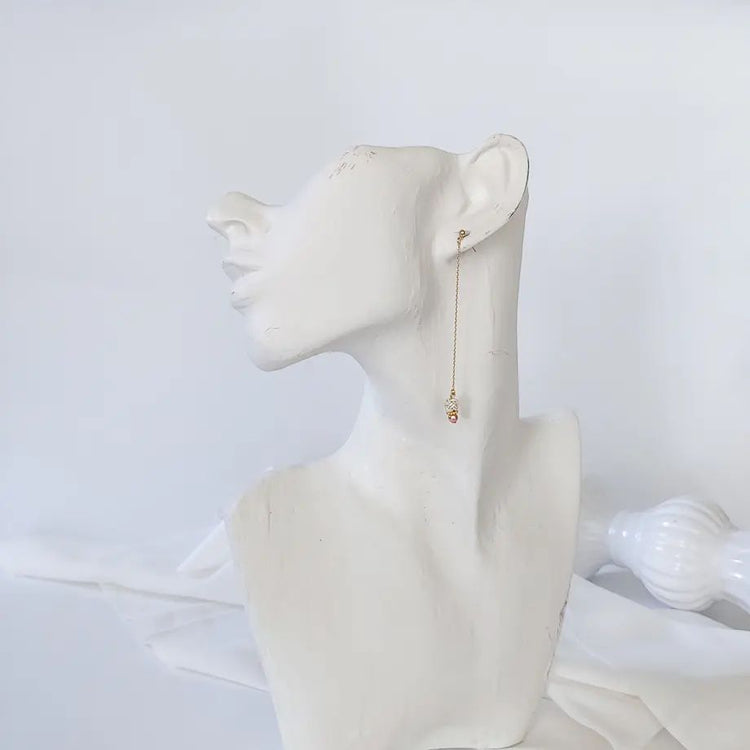 Pierced earrings/Clip-on earrings are made to sway delicately.