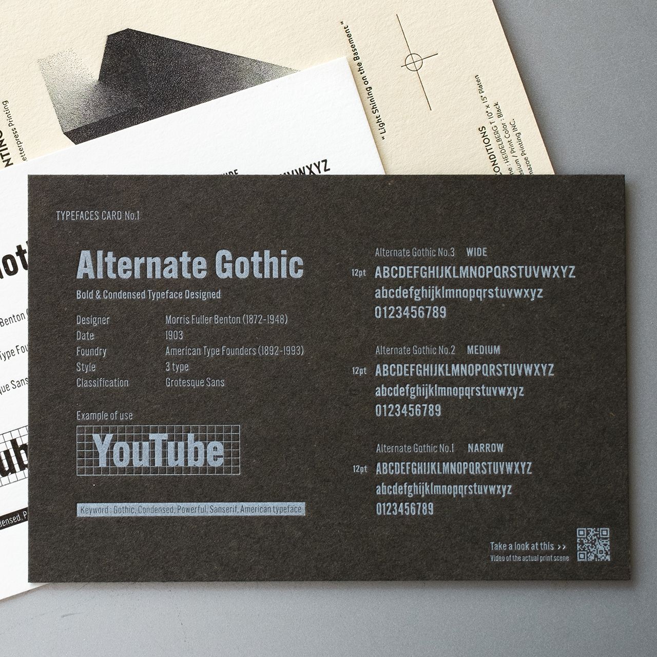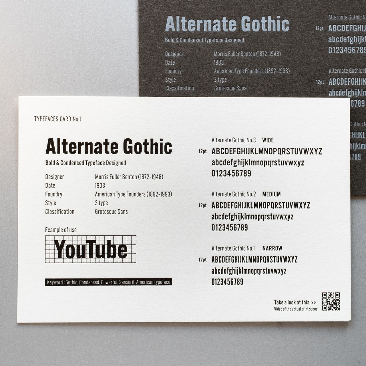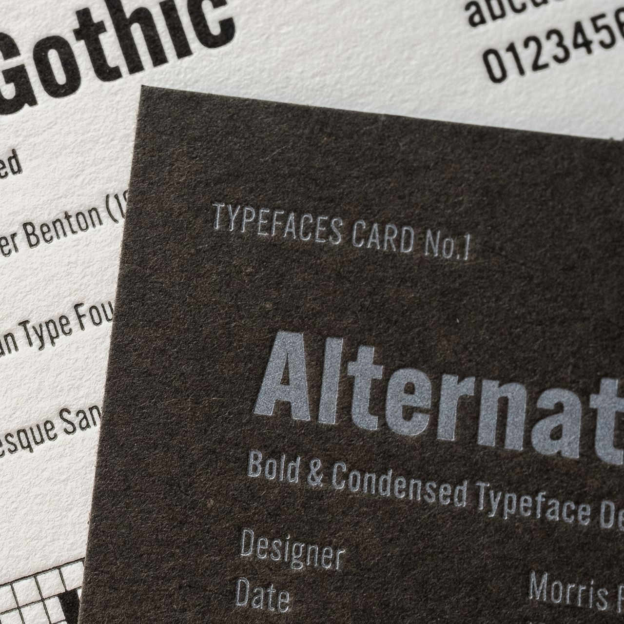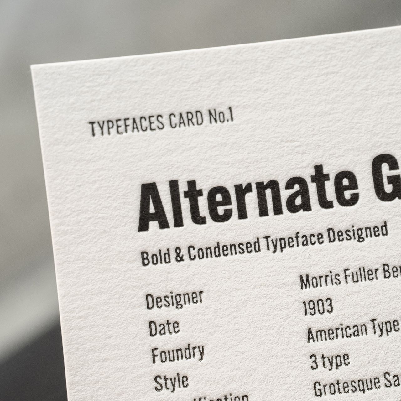 The typefaces [Alternate Gothic] we have in our possession are introduced.